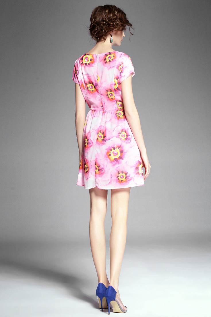 > 2015夏季新款 圆领印花收腰修身a字裙品质连衣裙