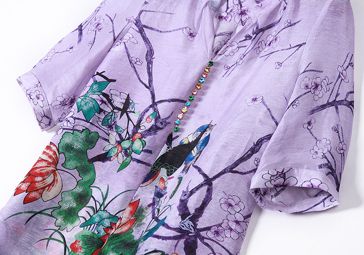 2015春夏新款欧美风印花高档桑蚕丝七分袖A字裙真丝连衣裙