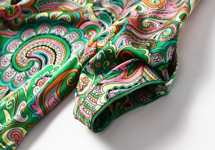2015春夏新款欧美风印花高档桑蚕丝七分袖A字裙真丝连衣裙