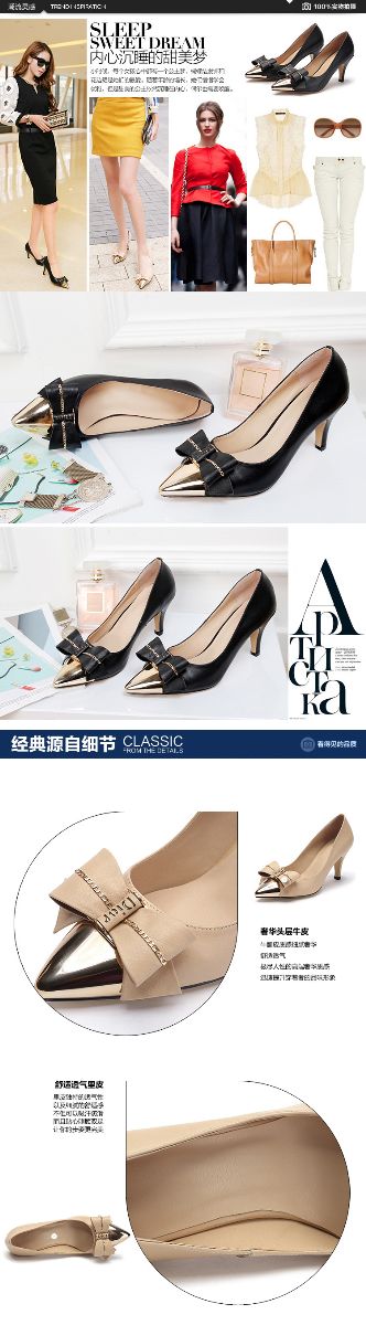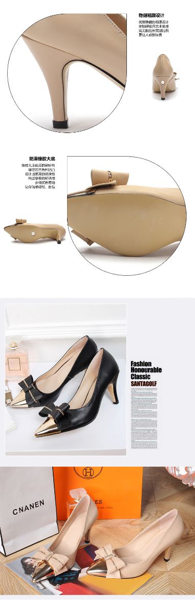 2015春夏新款真皮女鞋尖头高跟鞋拼接细跟单鞋女
