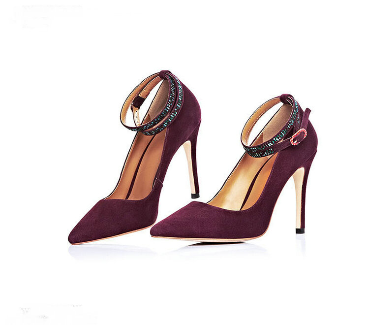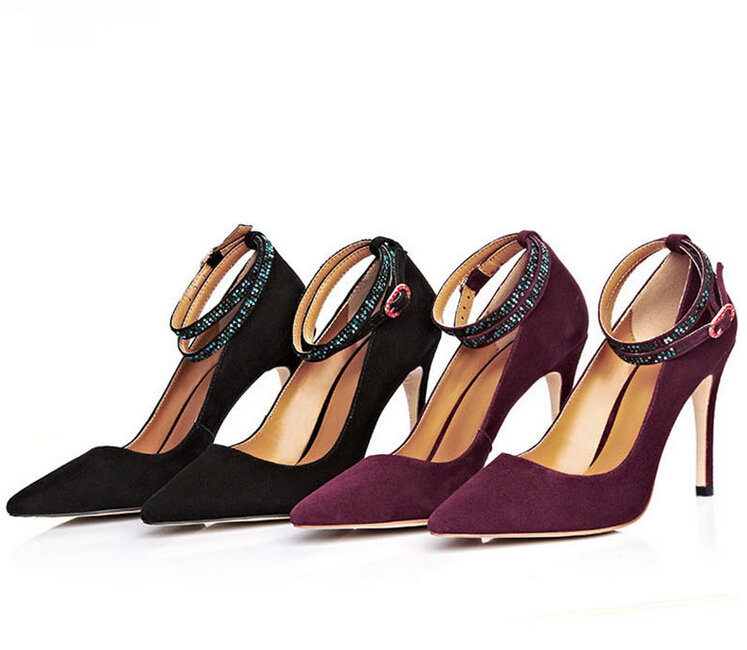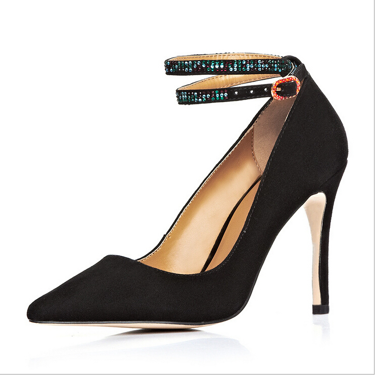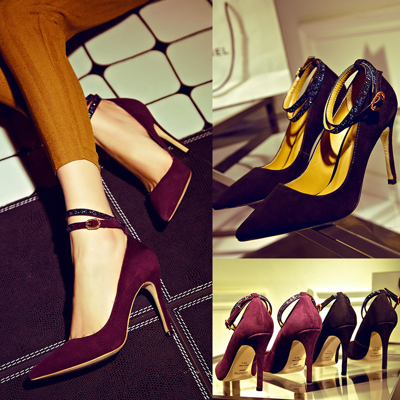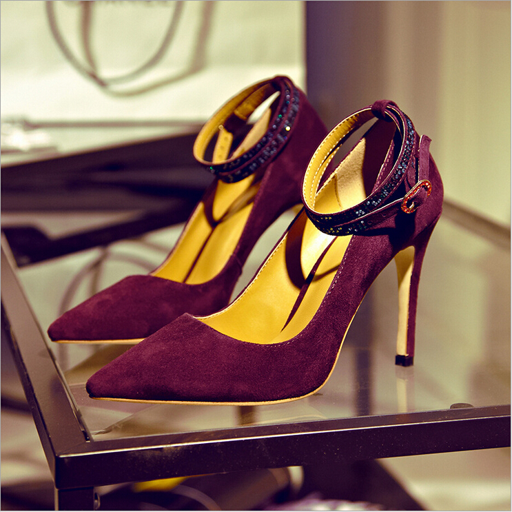 > 2015春季新款全真皮单鞋尖头水钻高跟鞋