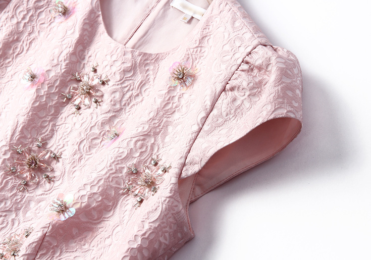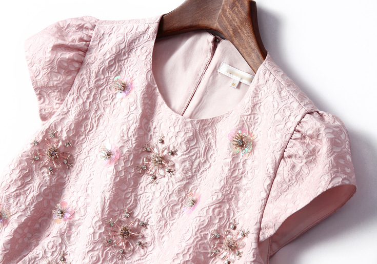 > 2015春季女装新款手工钉珠假两件侧拉圆领无袖修身连衣裙