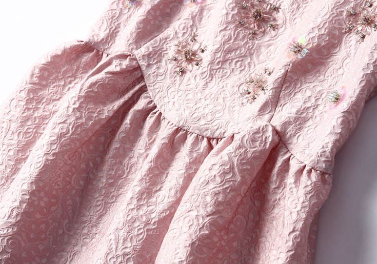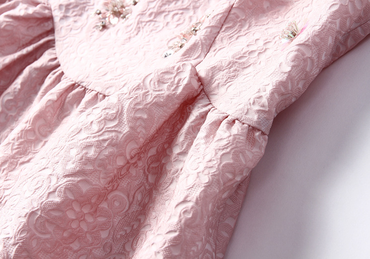 2015欧美风春季仙女裙气质新款刺绣网纱连衣裙七分袖大摆裙