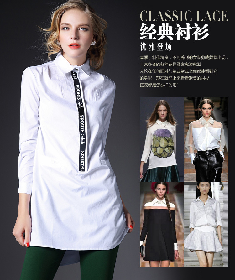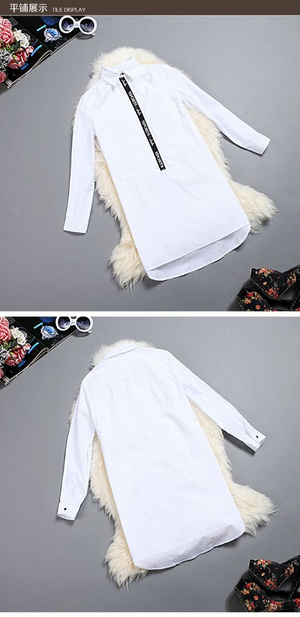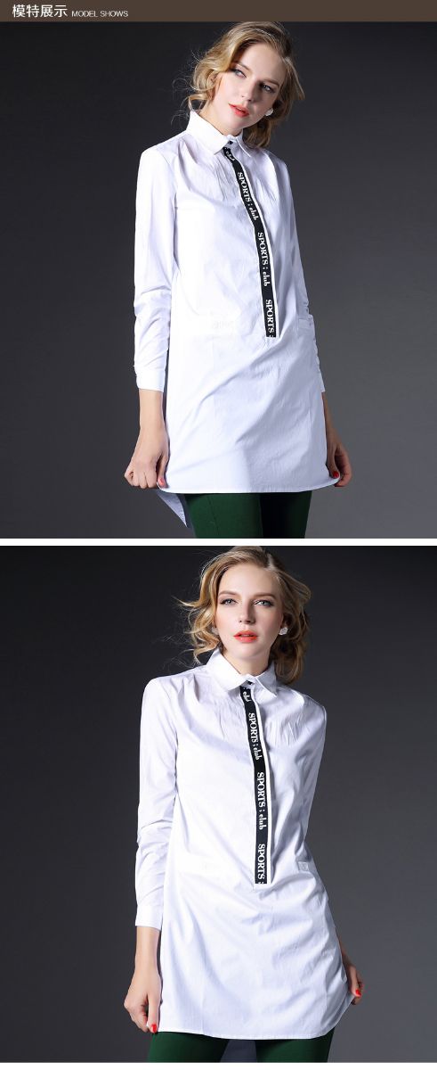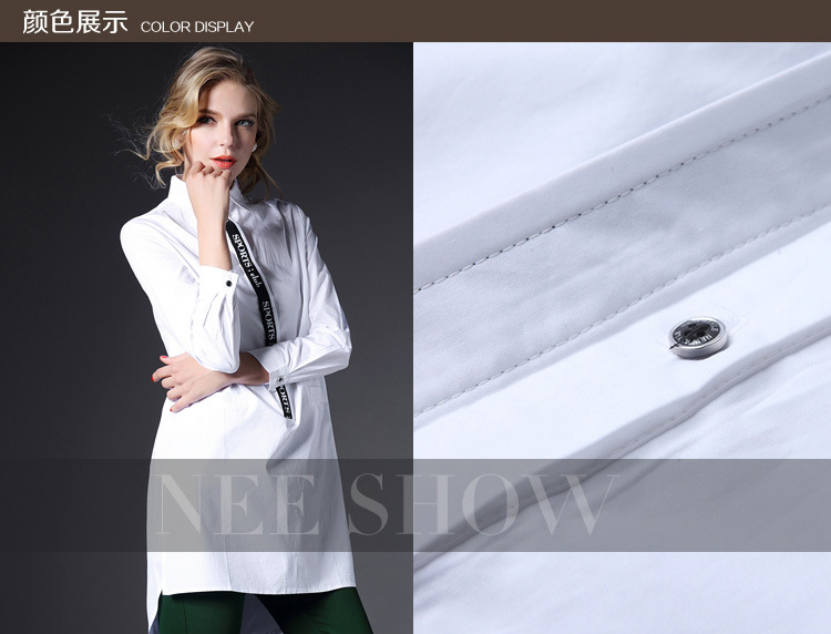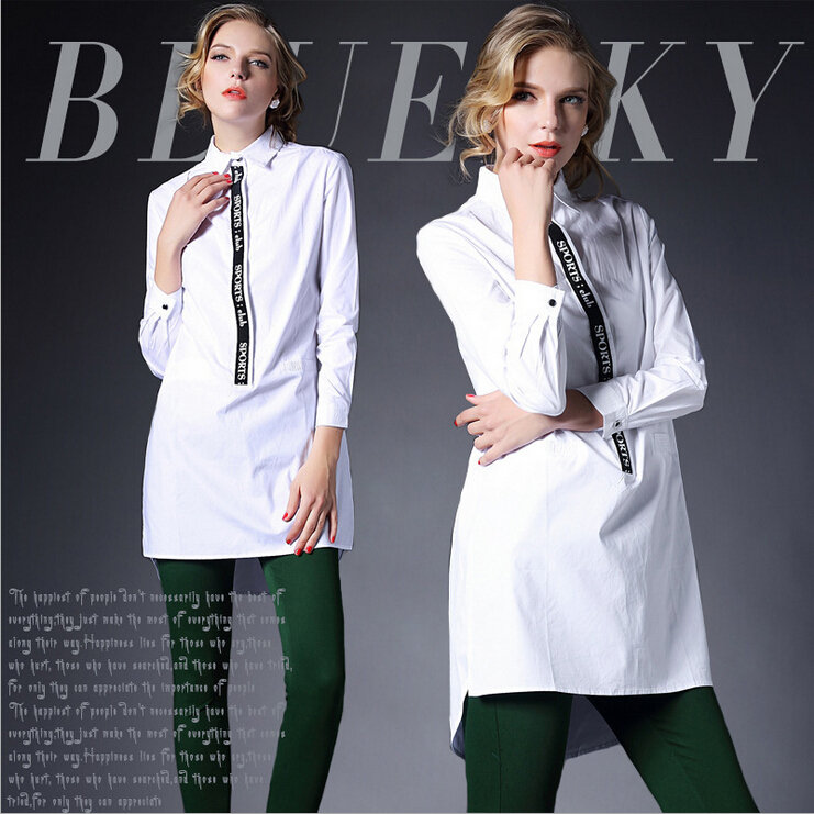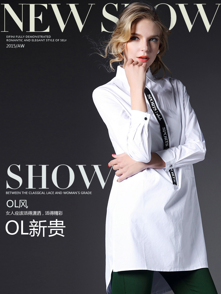 > 2015春装新款大码女装长款欧美宽松白色棉衬衣潮