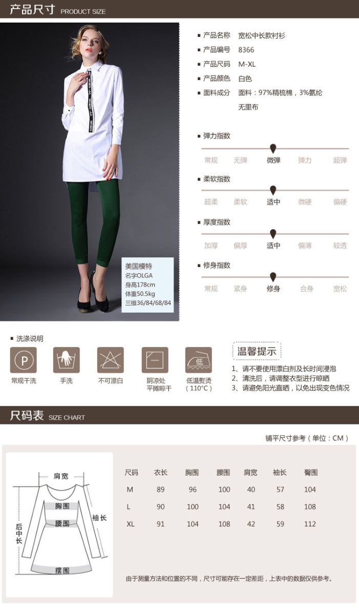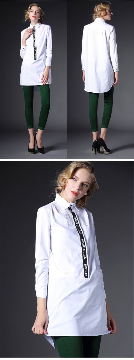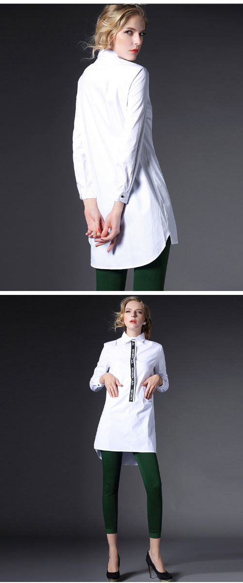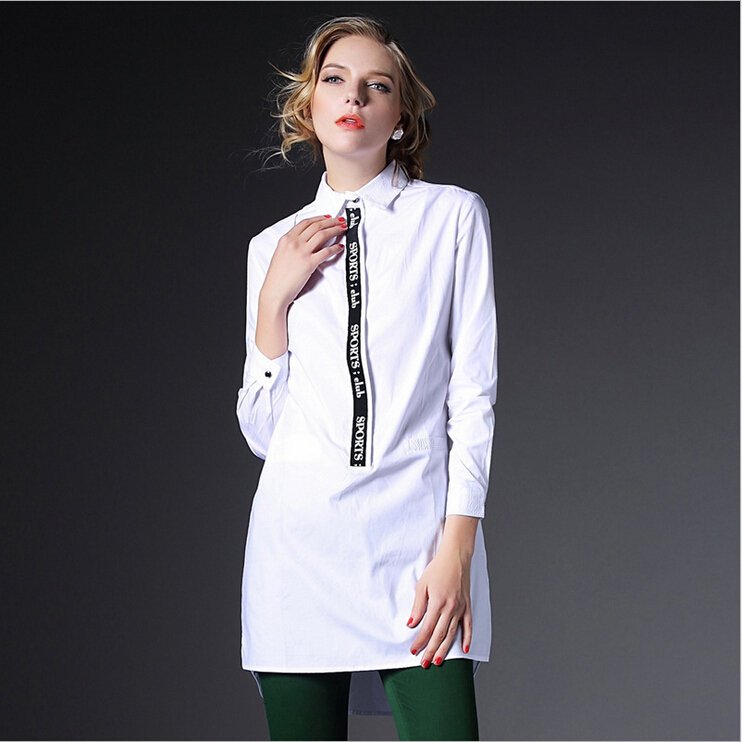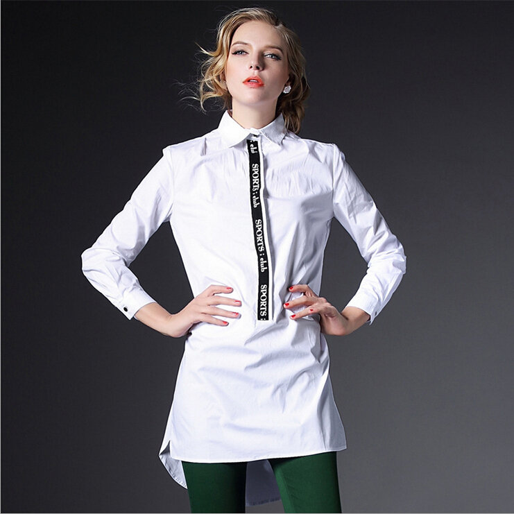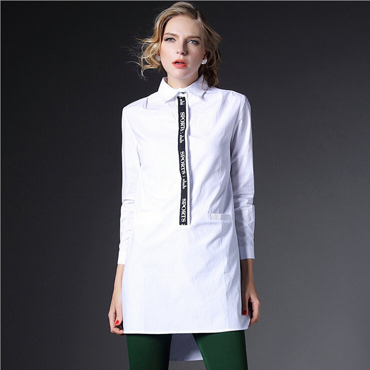 > 2015春装新款大码女装长款欧美宽松白色棉衬衣潮