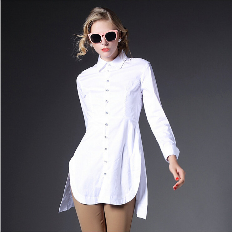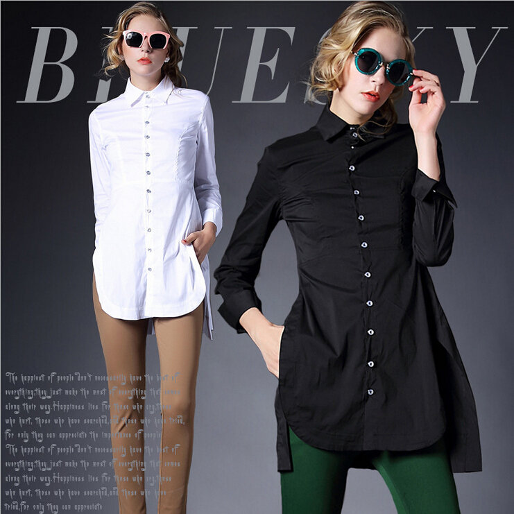 > 2015春装新款女装修身中长款衬衫女欧美长袖打底衬衣