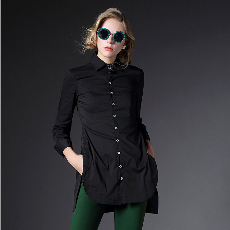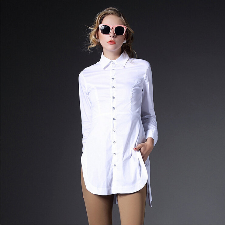 2015春装新款女装修身中长款衬衫女欧美长袖打底衬衣