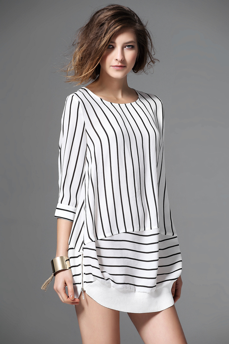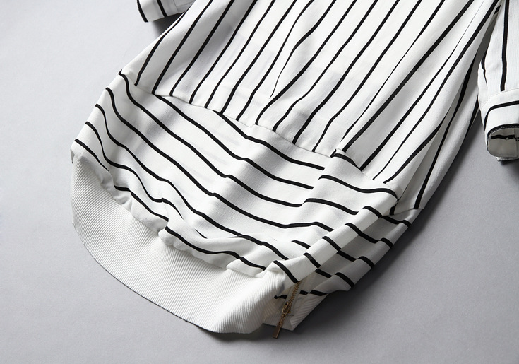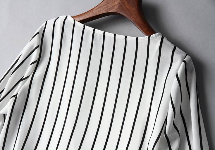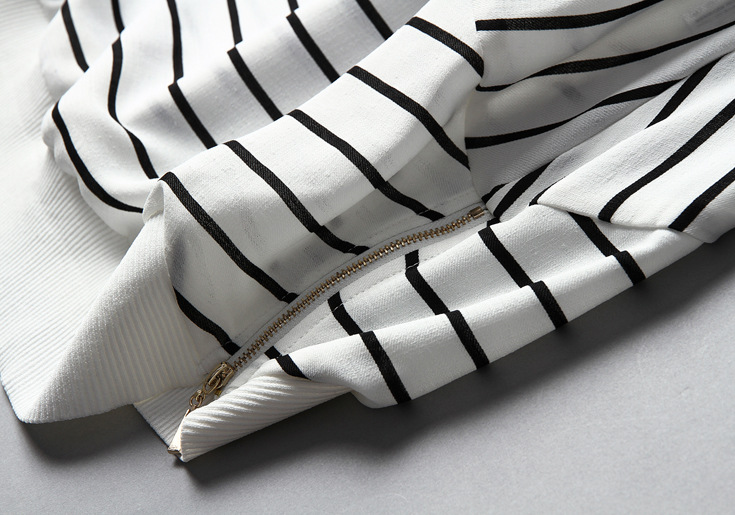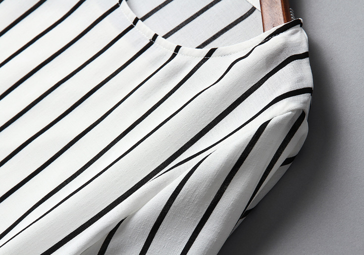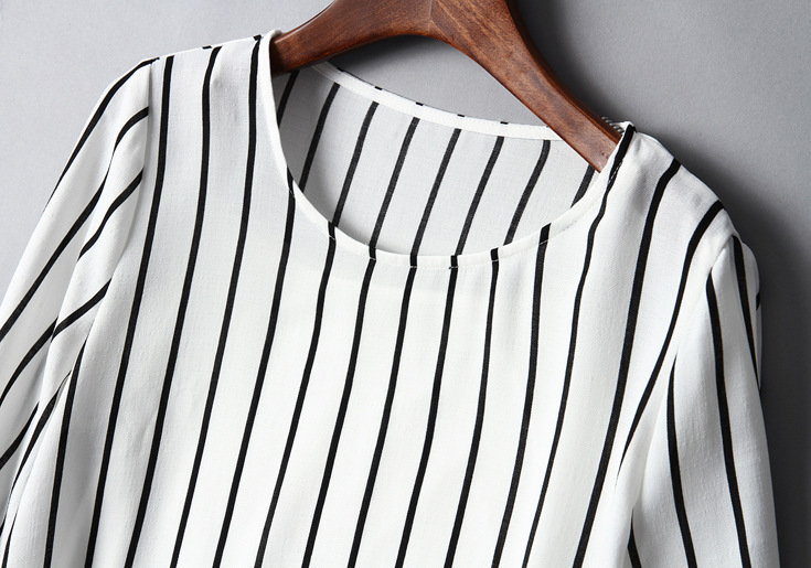 > 2015春季新款女装气质圆领七分袖条纹显瘦一步连衣裙