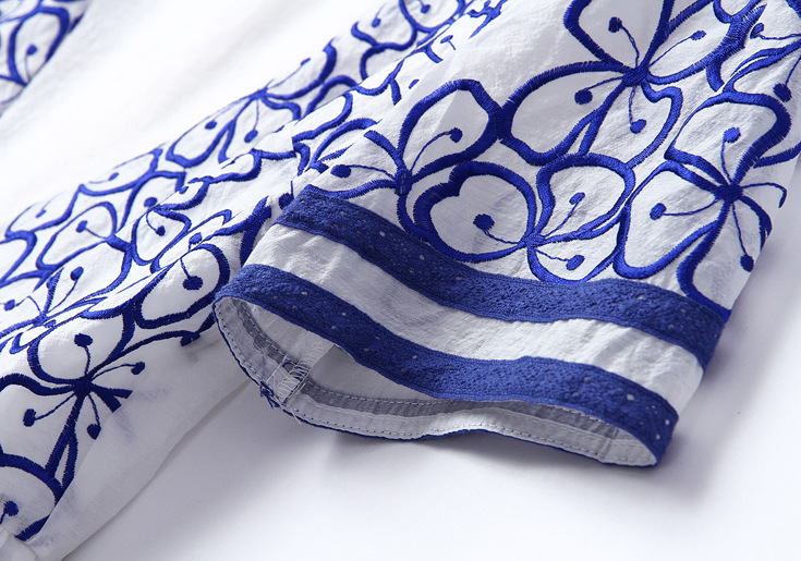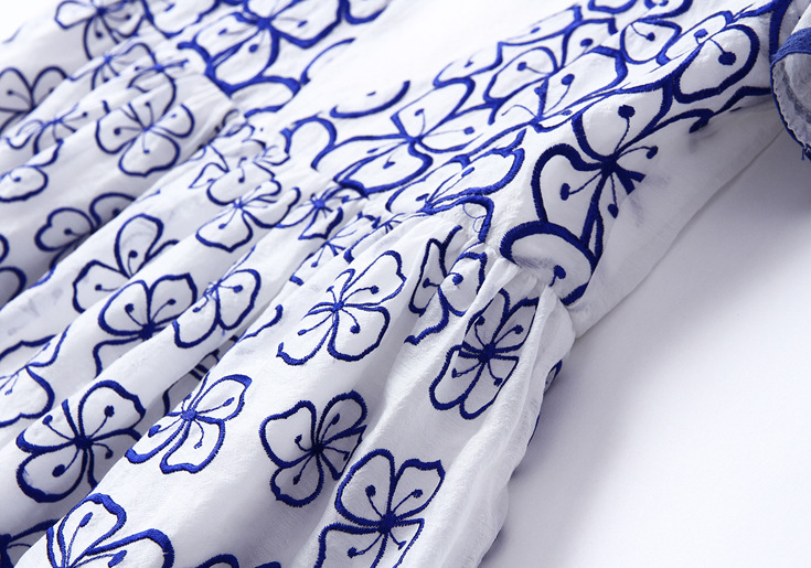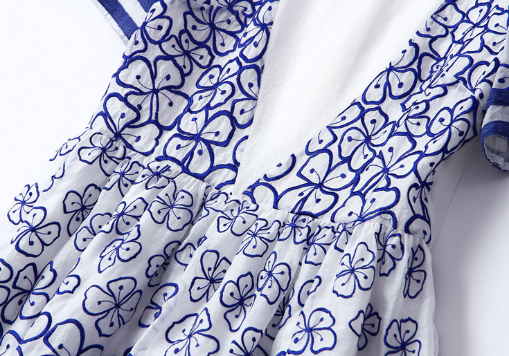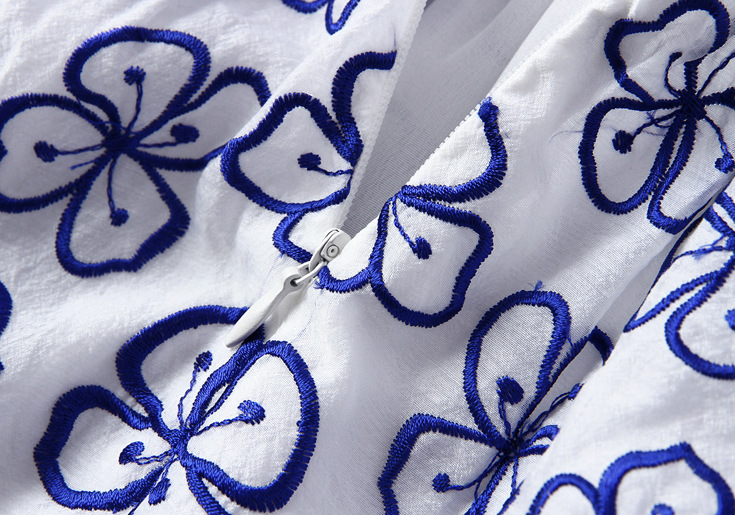 2015夏季欧美大牌圆领短袖重工绣花气质拼接收腰连衣裙