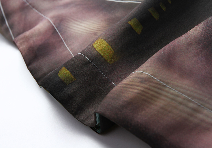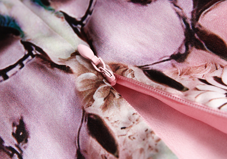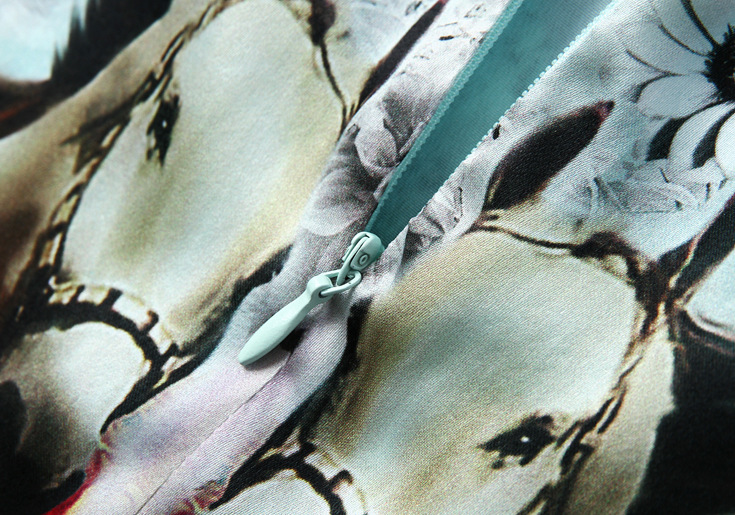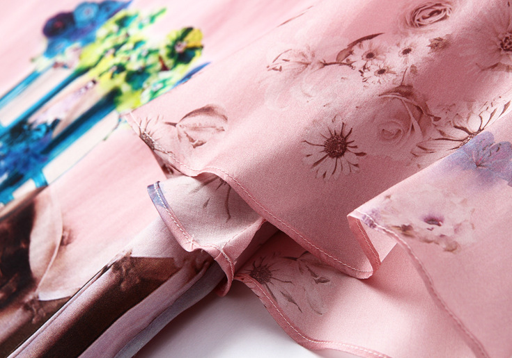 > 2015夏季新品 圆领喇叭袖真丝欧根纱印花连衣裙品质批发