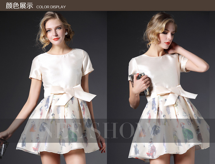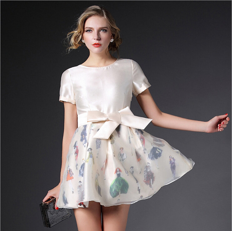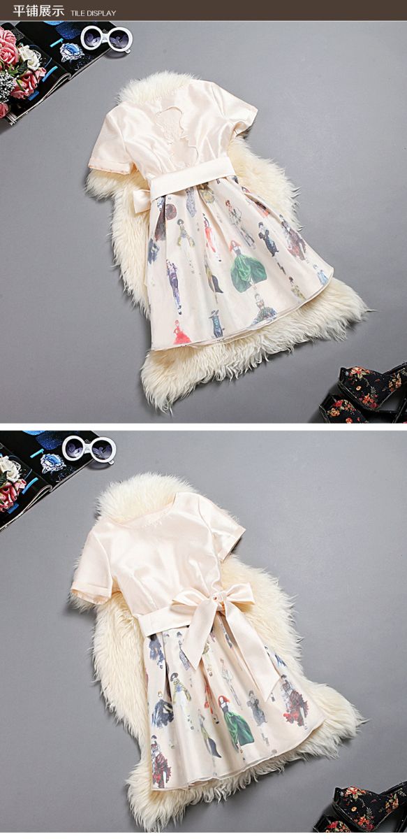 > 2015春夏新款镂空蕾丝绣花连衣裙女短袖高腰公主蓬蓬裙