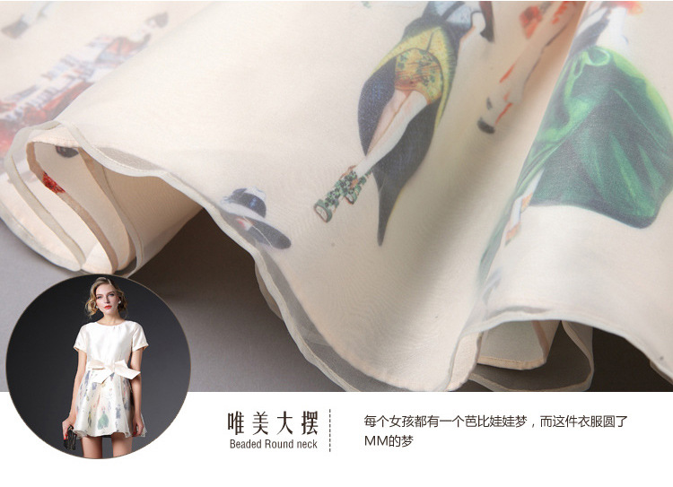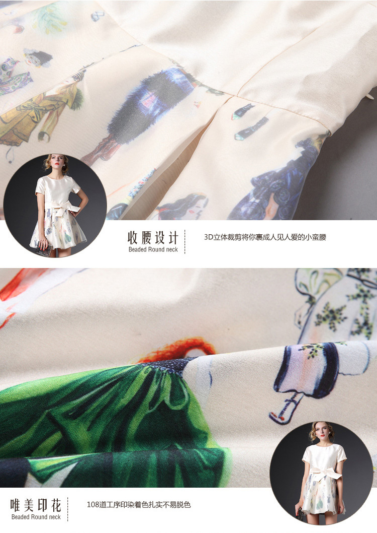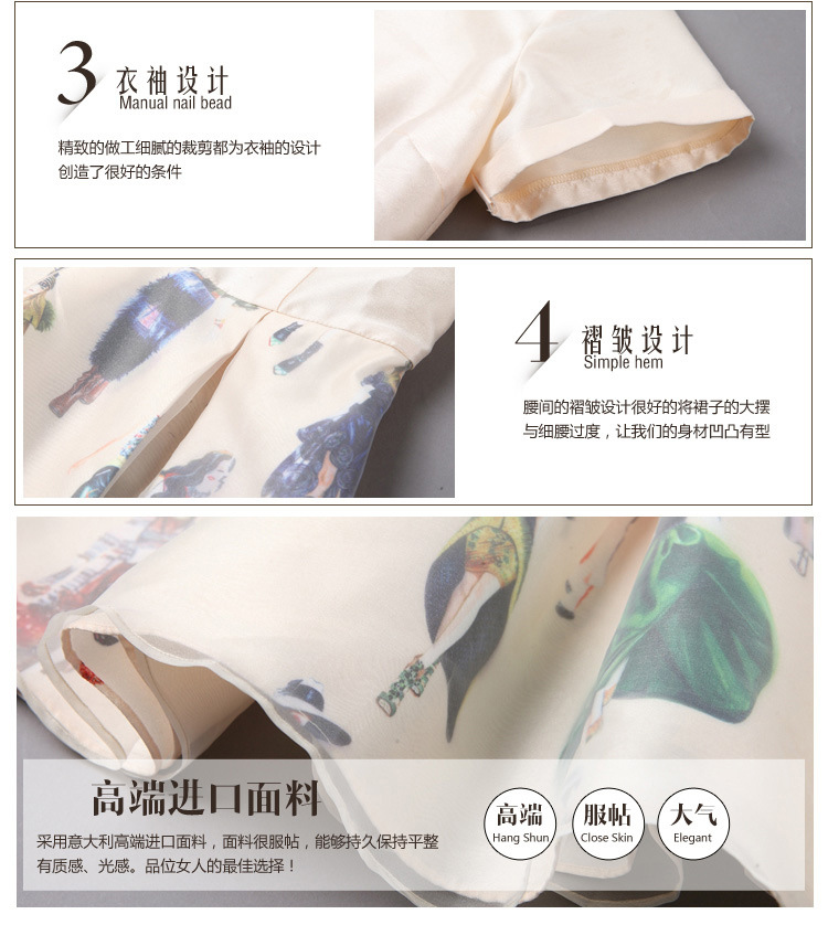 2015春夏新款欧美风印花高档桑蚕丝七分袖A字裙真丝连衣裙
