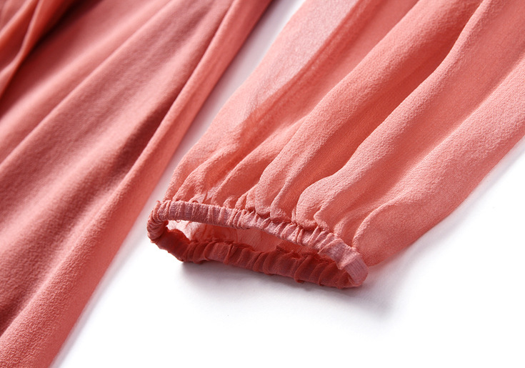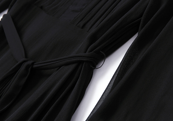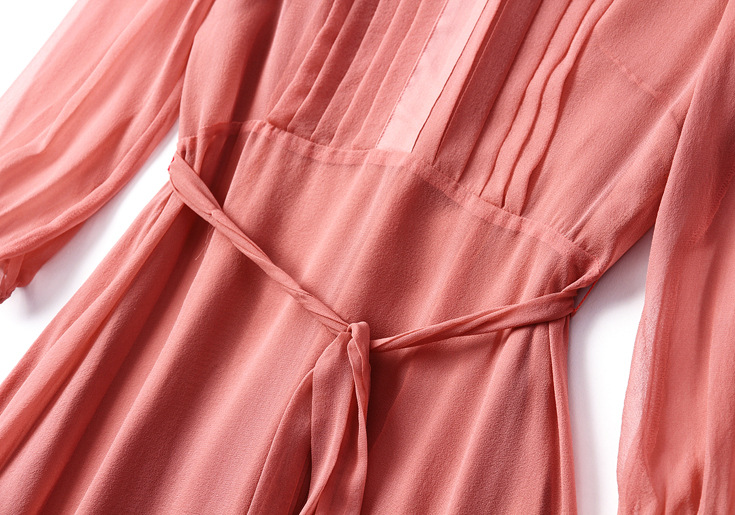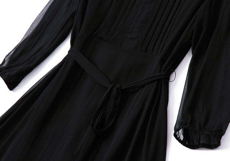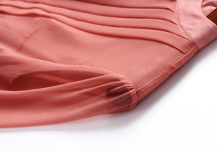 > 2015春夏新款女装 淑女气质立领纯色压褶不规则下摆真丝连衣裙
