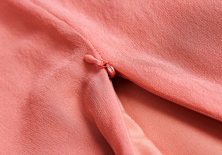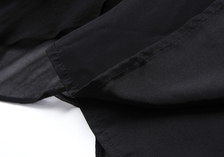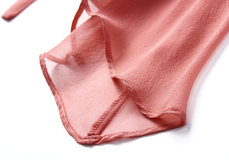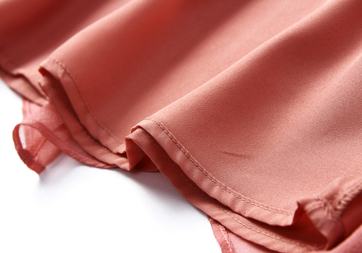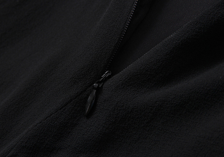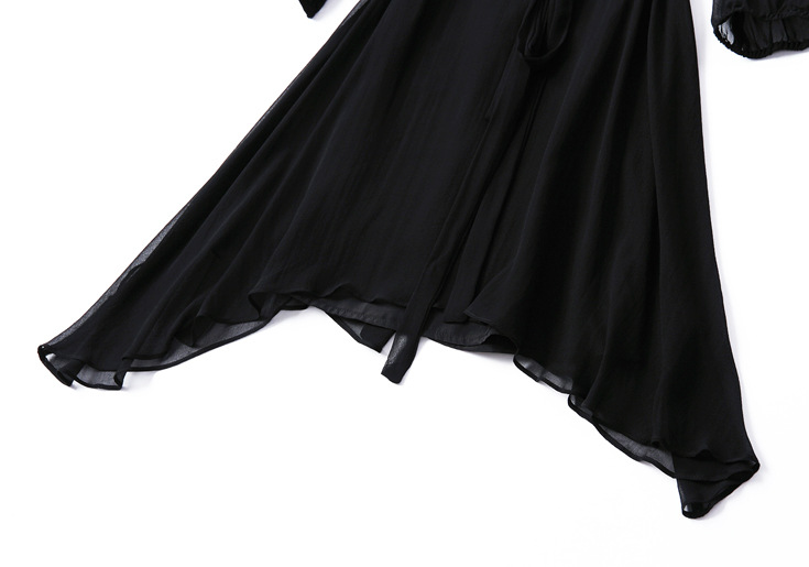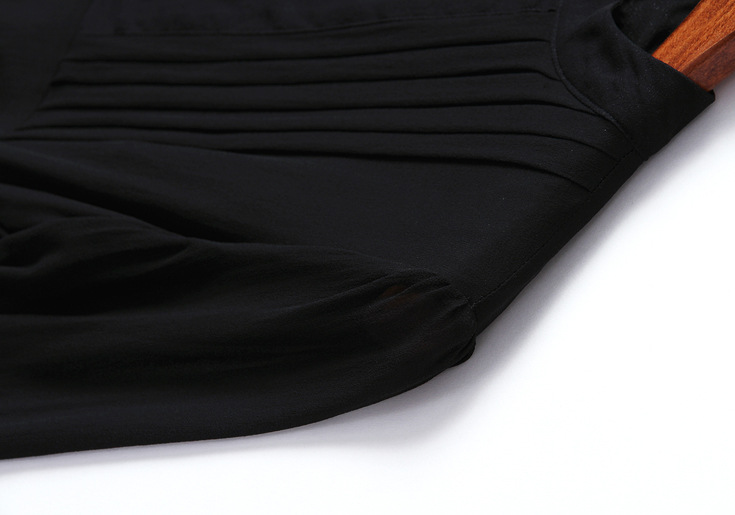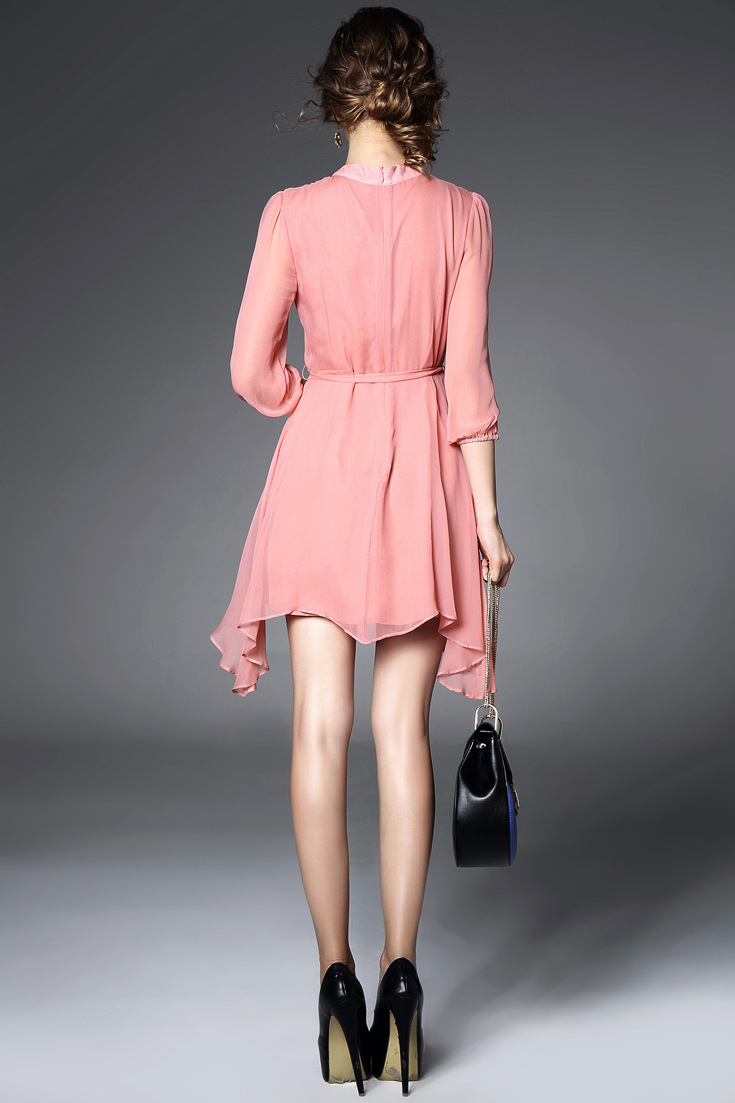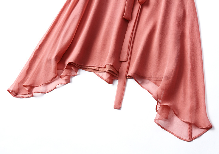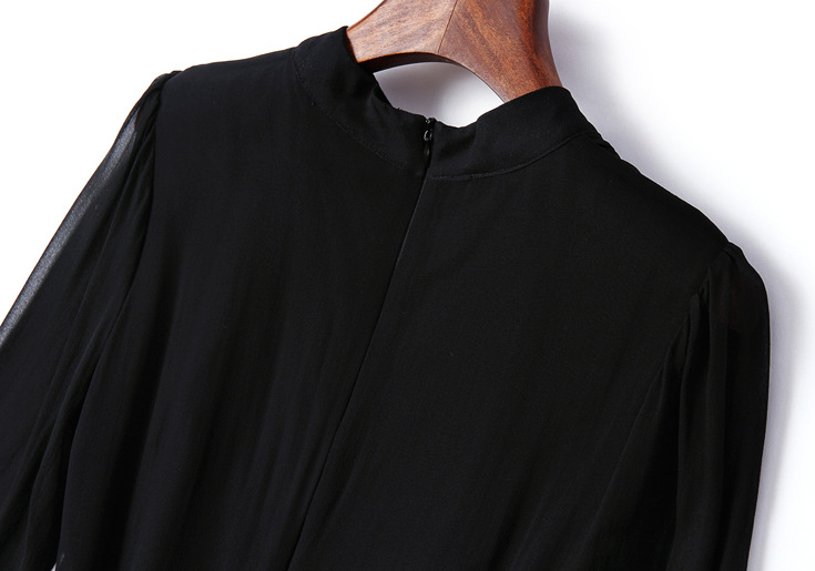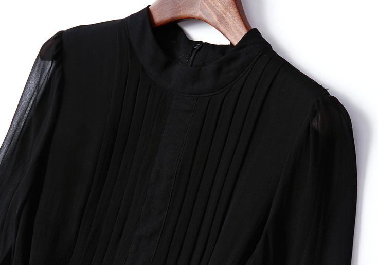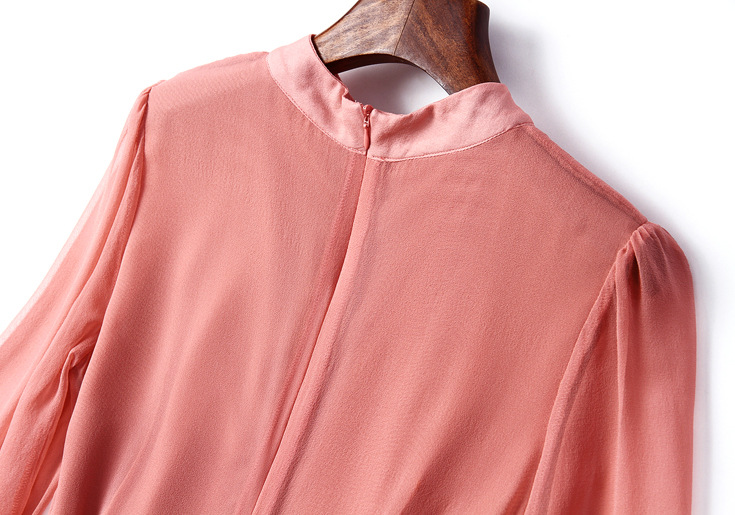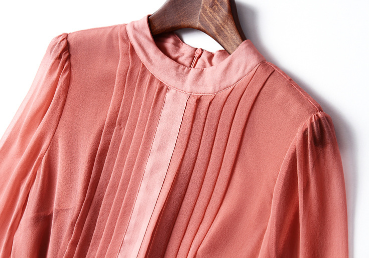 2015春夏新款女装 淑女气质立领纯色压褶不规则下摆真丝连衣裙