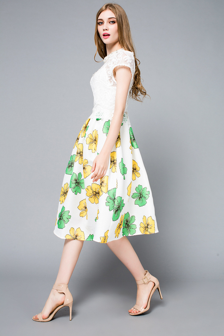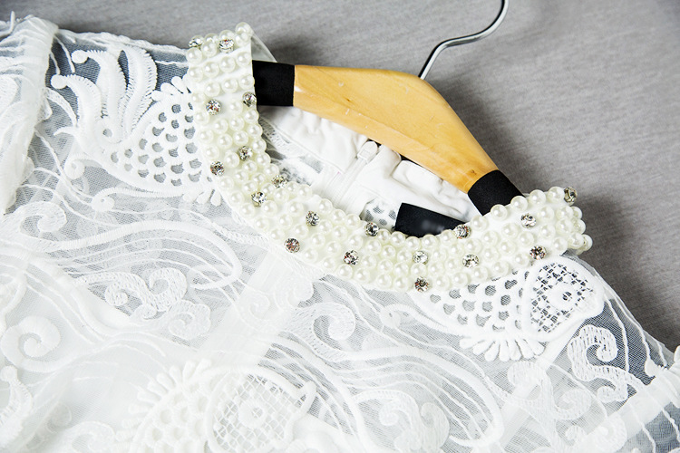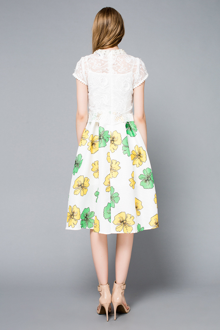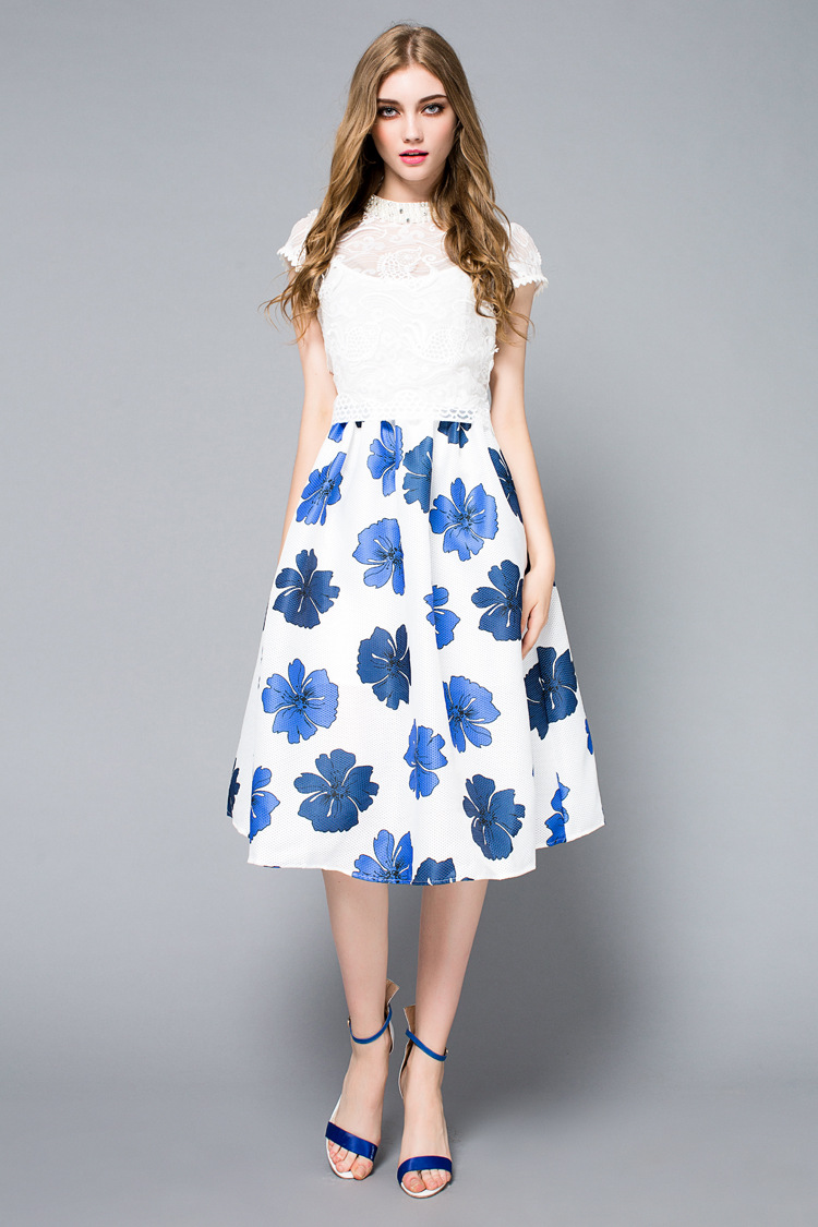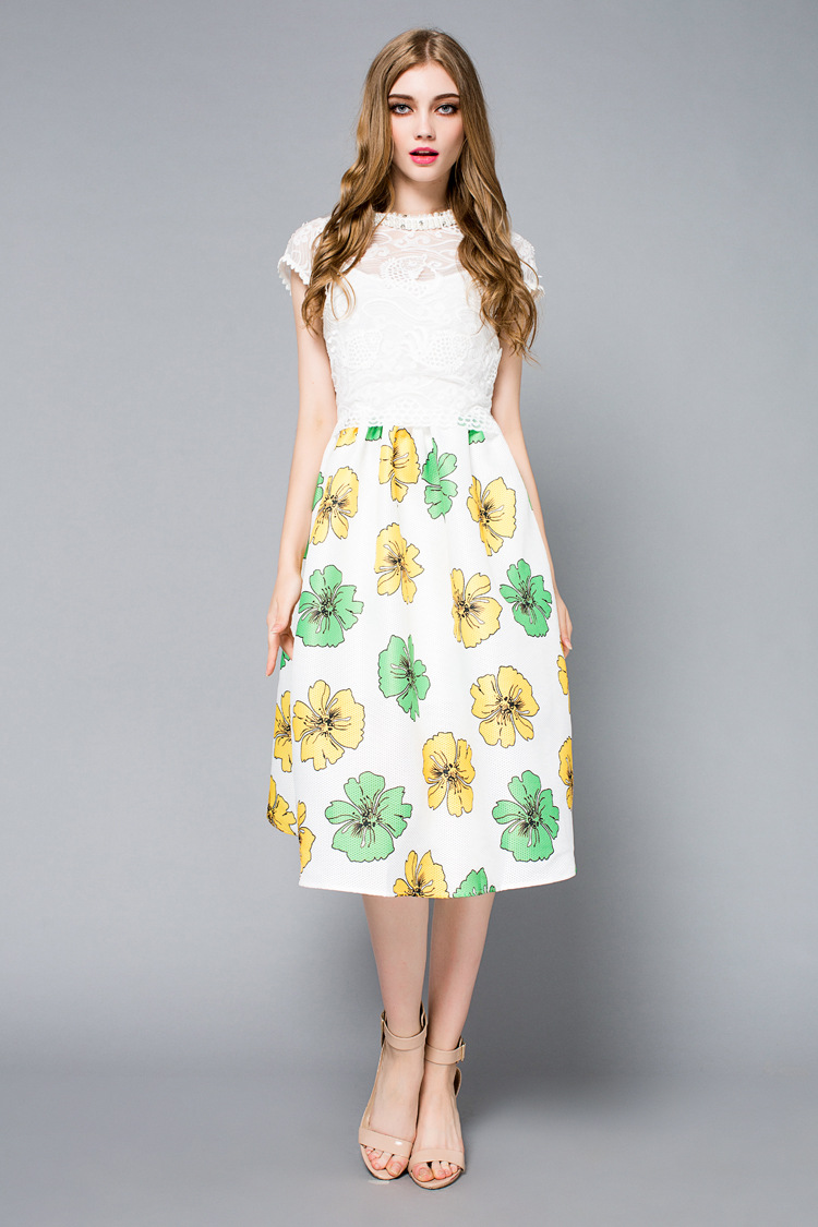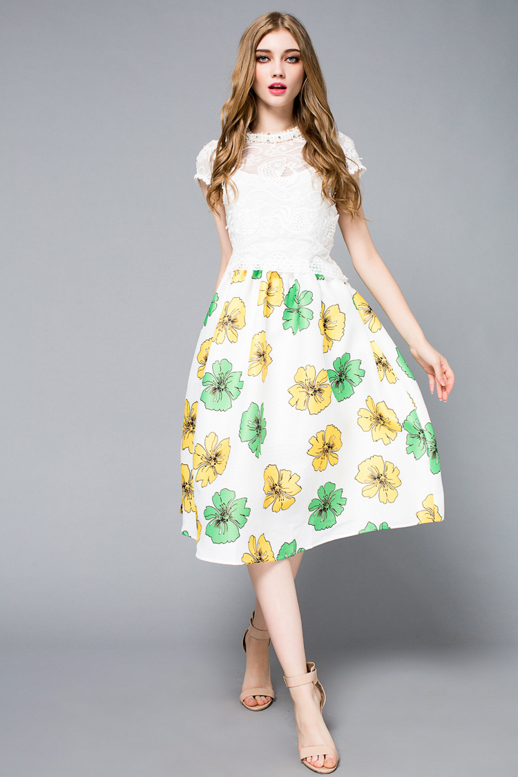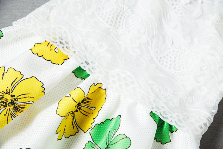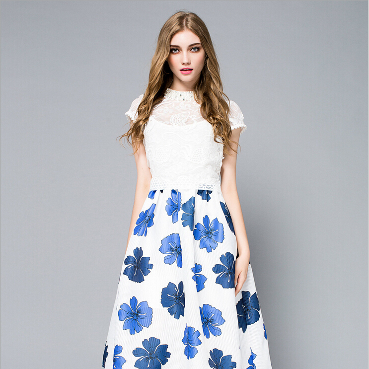 > 2015新款欧美外贸高端女装 水溶拼接印花网布假两件连衣裙