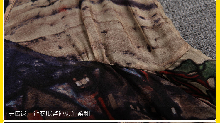2015春夏季新款欧美风印花真丝连衣裙七分袖衬衣领时尚A字裙