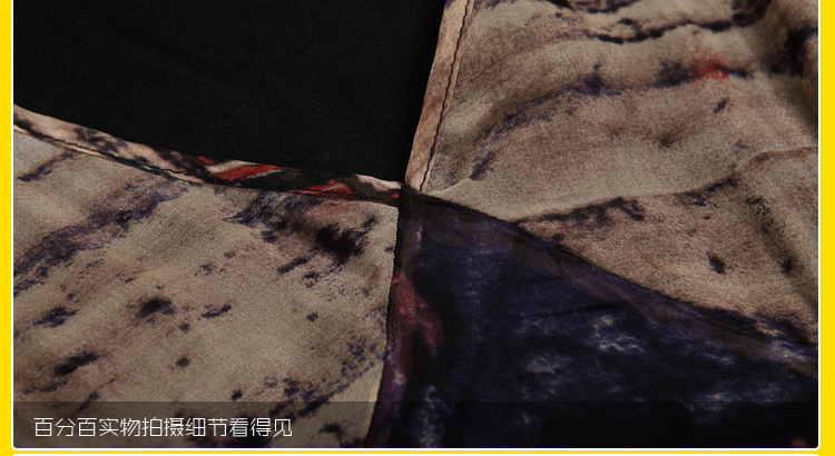 2015春夏新款欧美风印花高档桑蚕丝七分袖A字裙真丝连衣裙