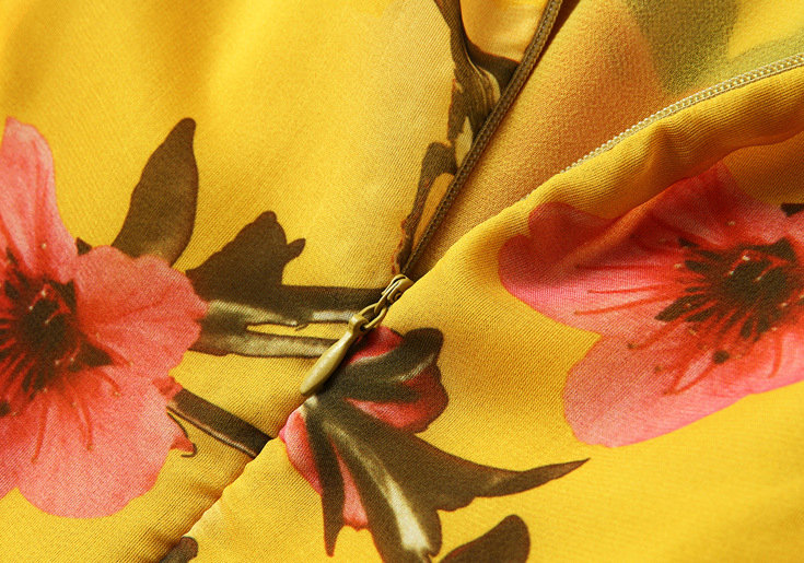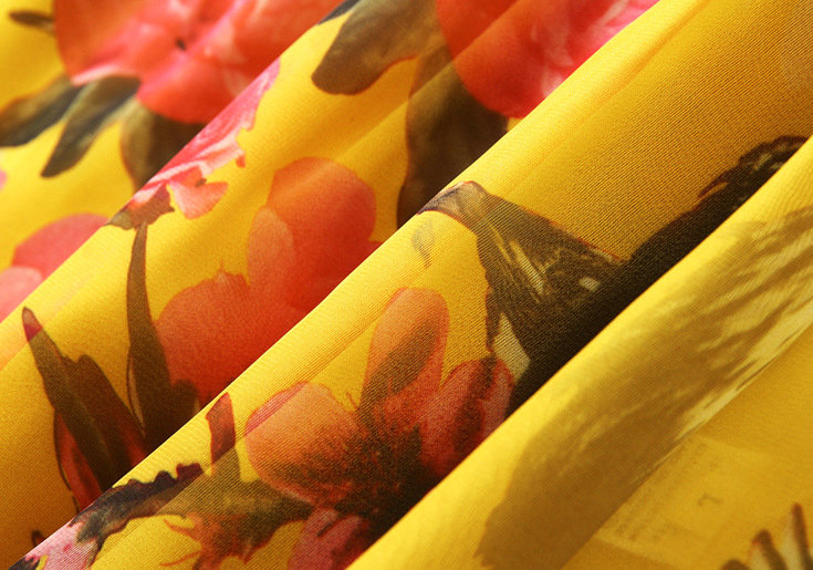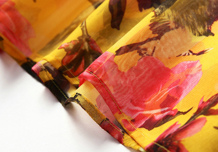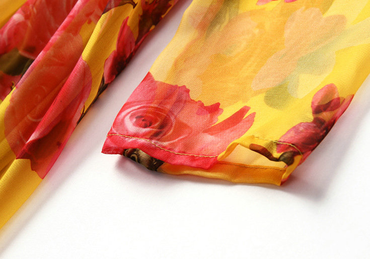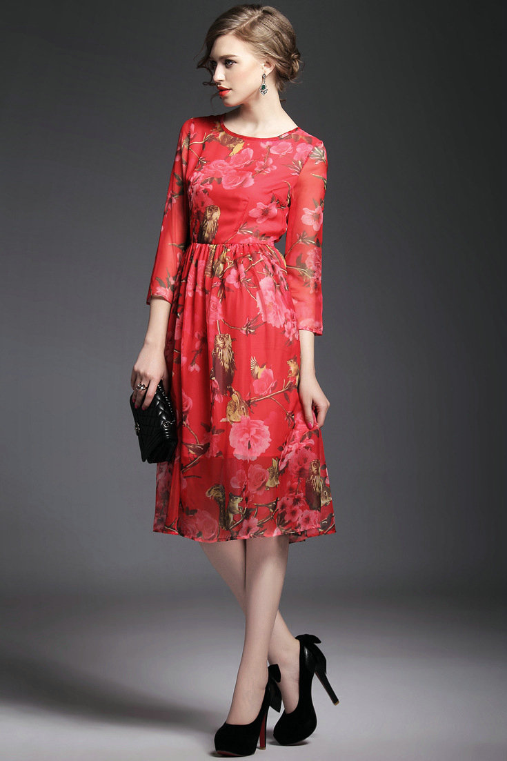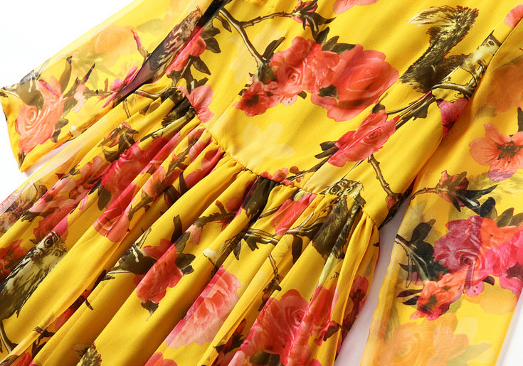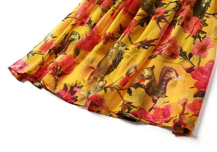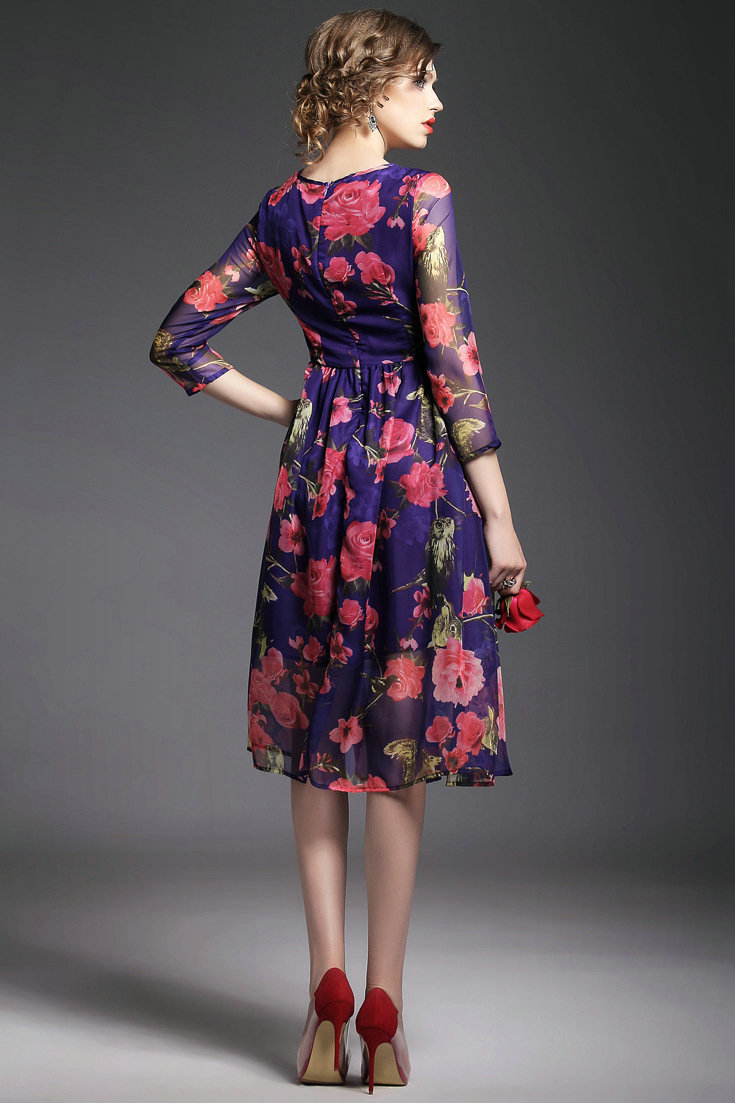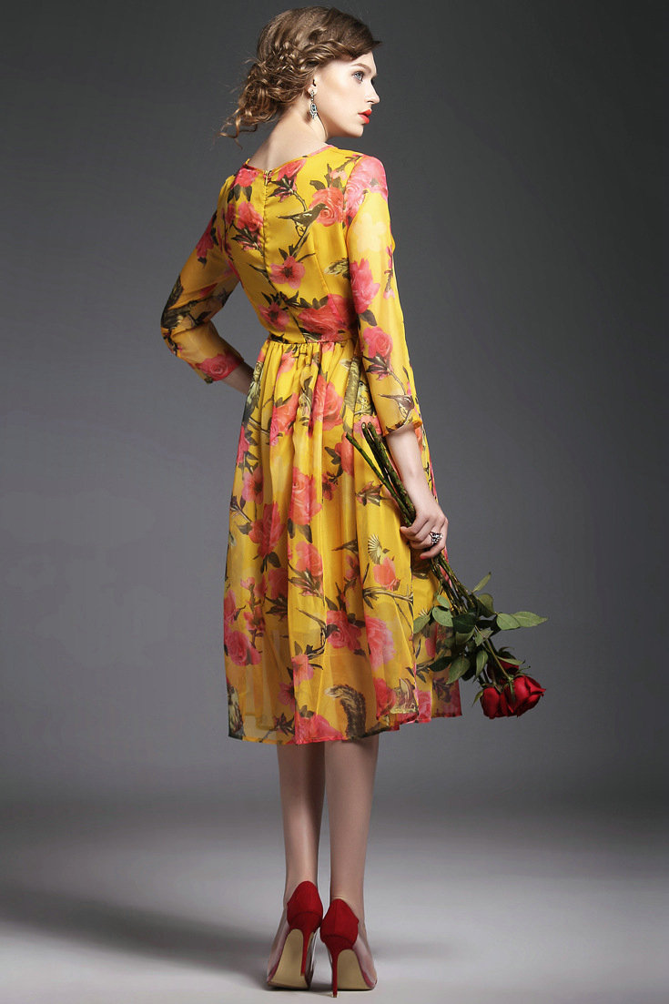 2015春夏新款欧美风印花高档桑蚕丝七分袖A字裙真丝连衣裙