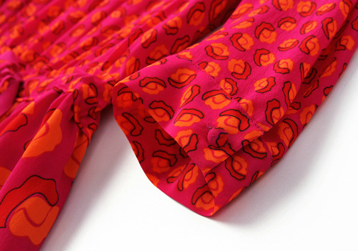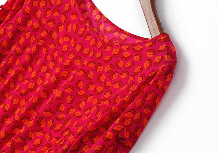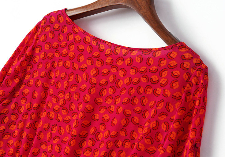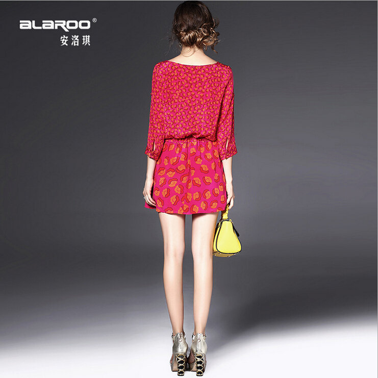 2015春夏新款欧美风印花高档桑蚕丝七分袖A字裙真丝连衣裙