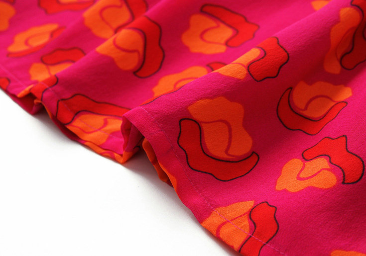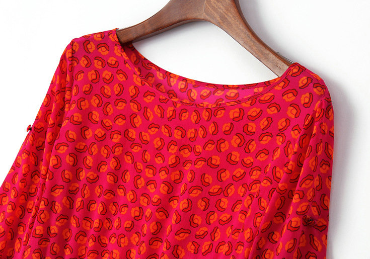2015春夏季新款欧美风印花真丝连衣裙七分袖衬衣领时尚A字裙