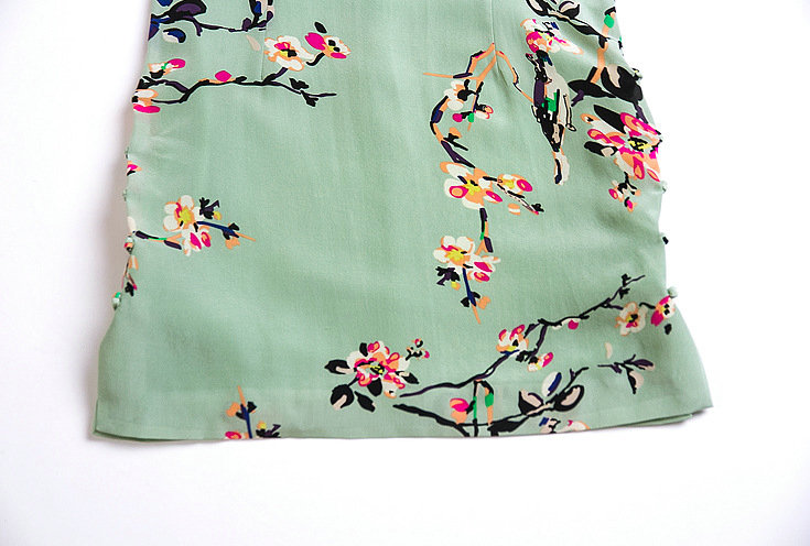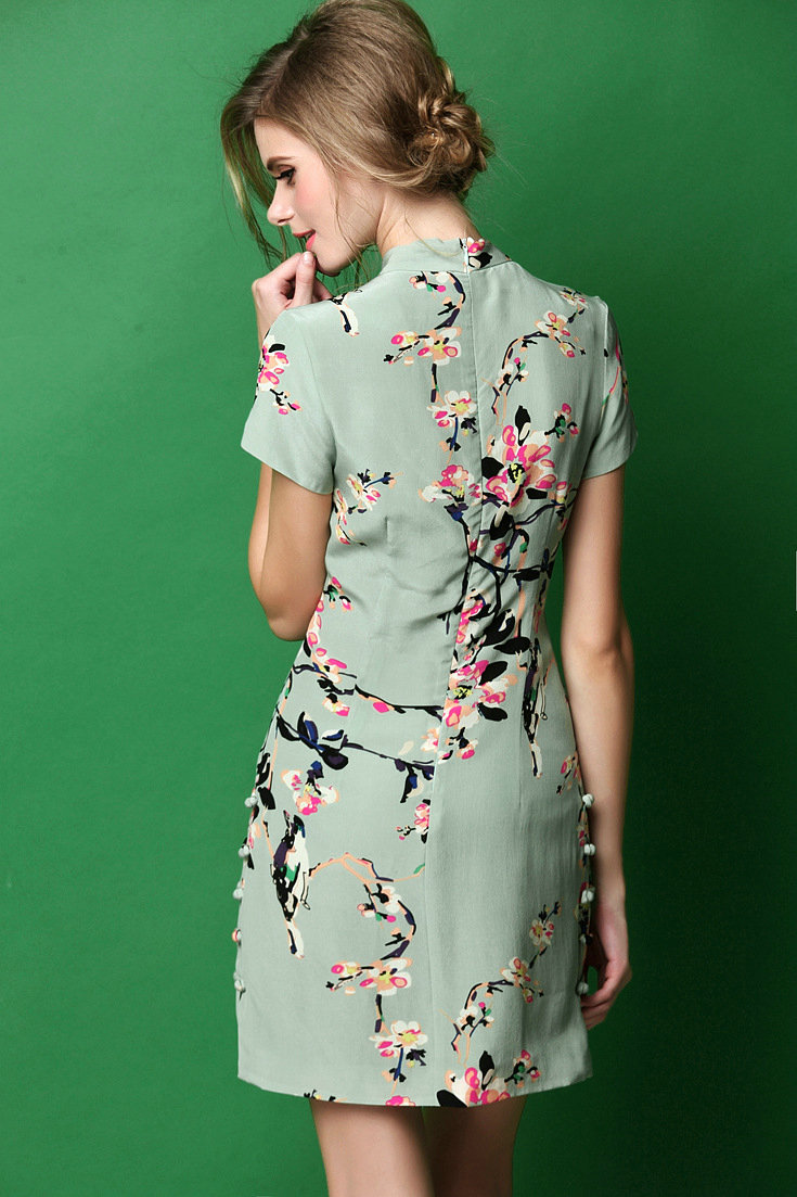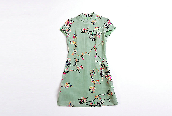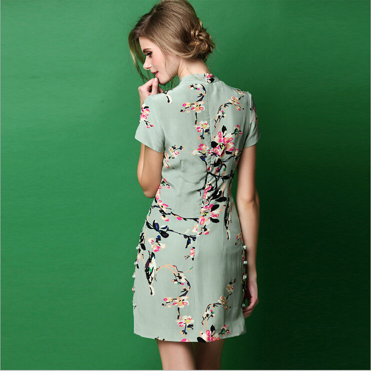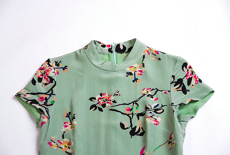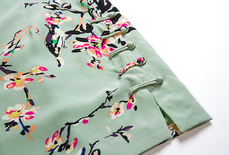 本期爆款推荐!!面料为双皱真丝,面料柔软,造价昂贵,下摆典型旗袍盘扣设计,典雅大方,高贵得体!