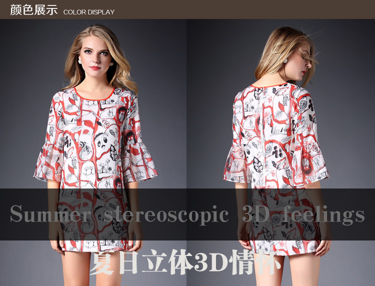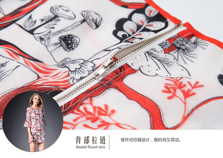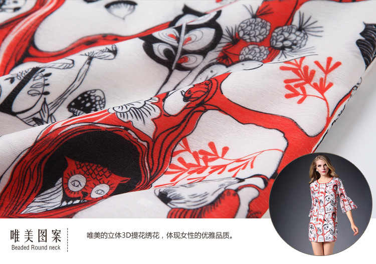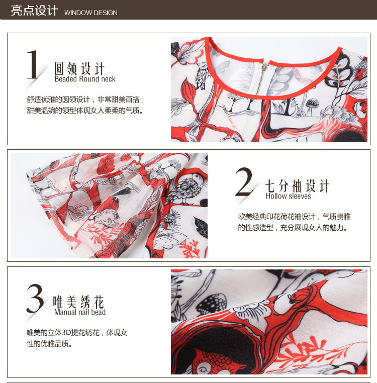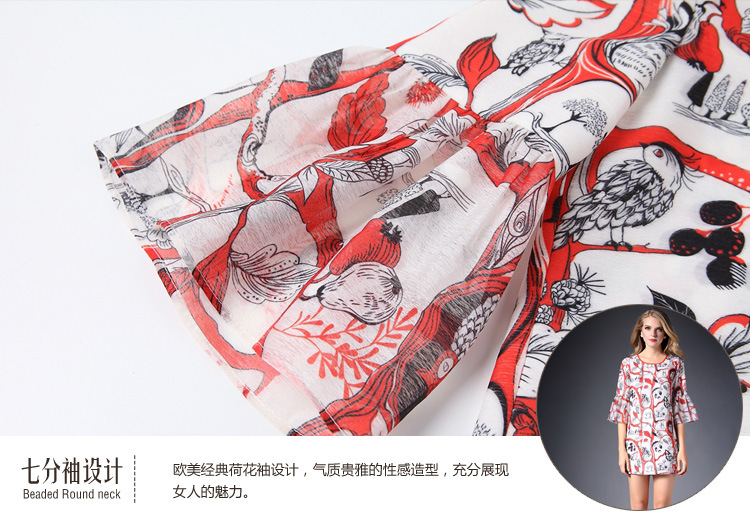 2015春夏新款欧美风印花高档桑蚕丝七分袖A字裙真丝连衣裙