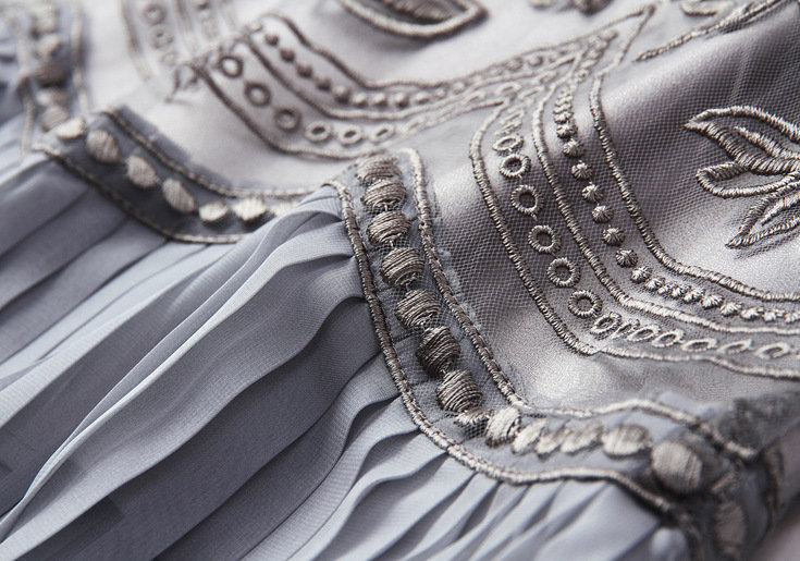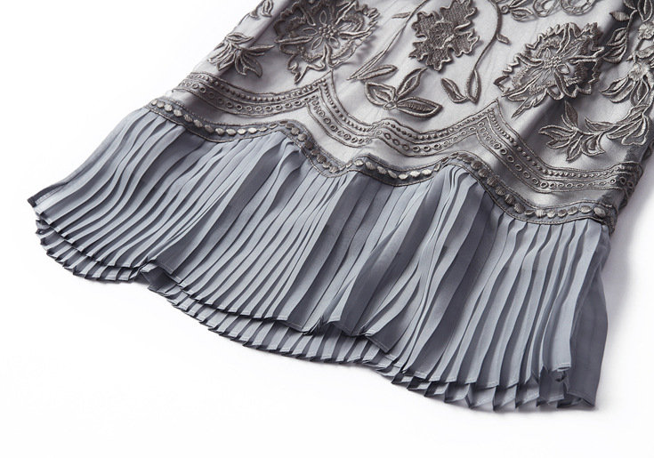 > 2015夏季新款欧美女装重工网纱绣花压褶裙摆拼接修身一步裙
