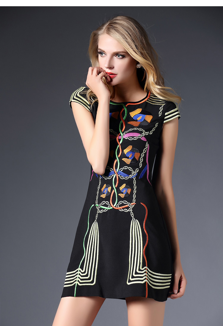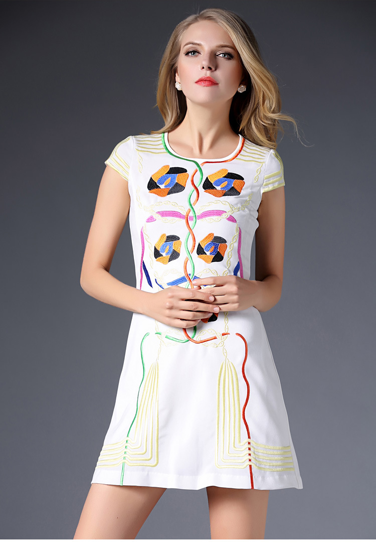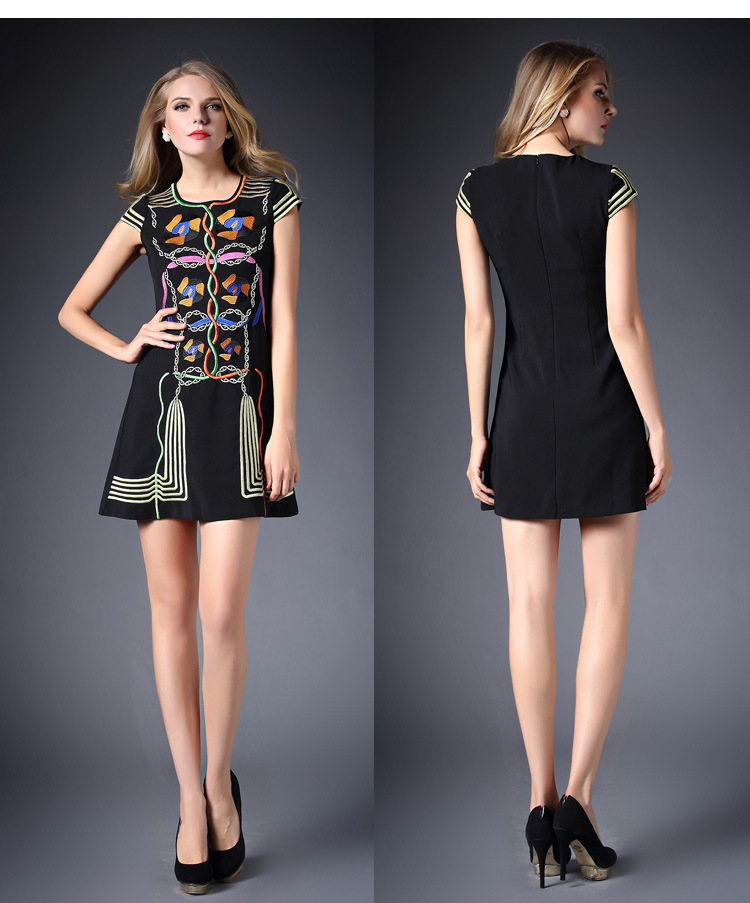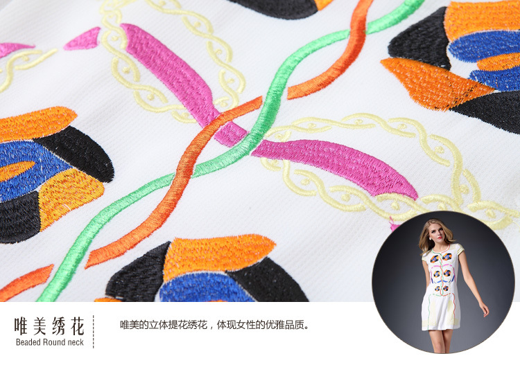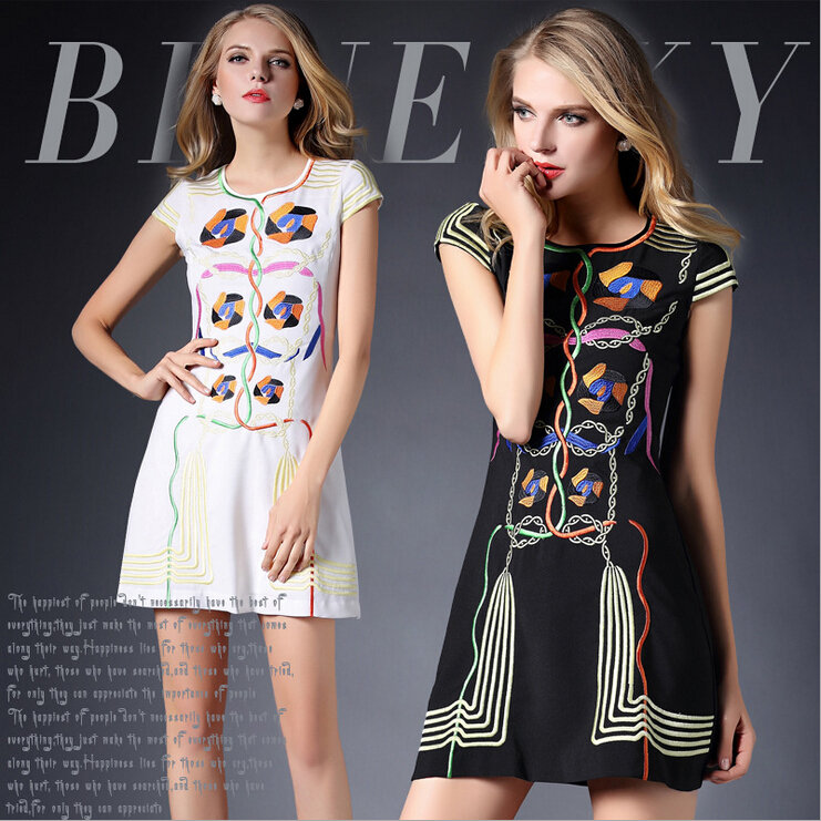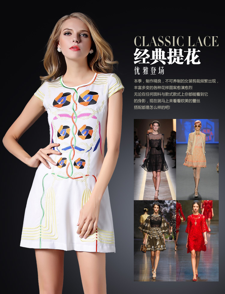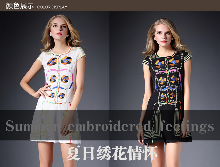 2015春装新款欧美绣花连衣裙女短袖时尚打底裙