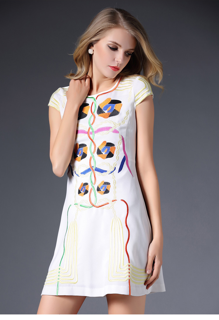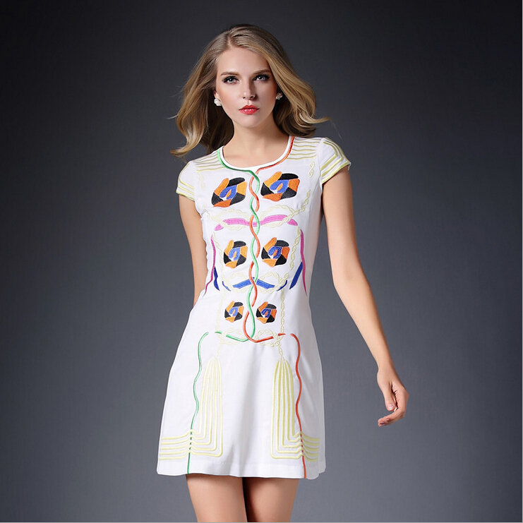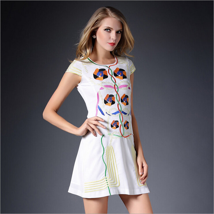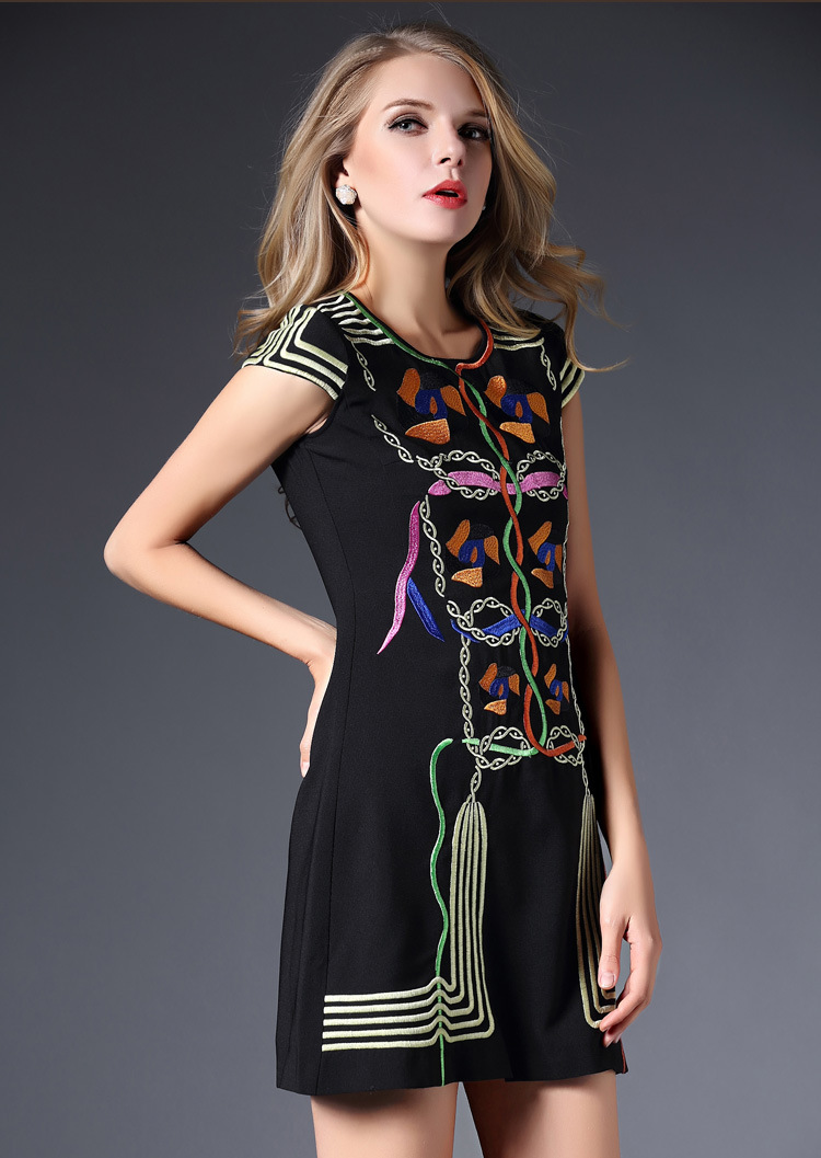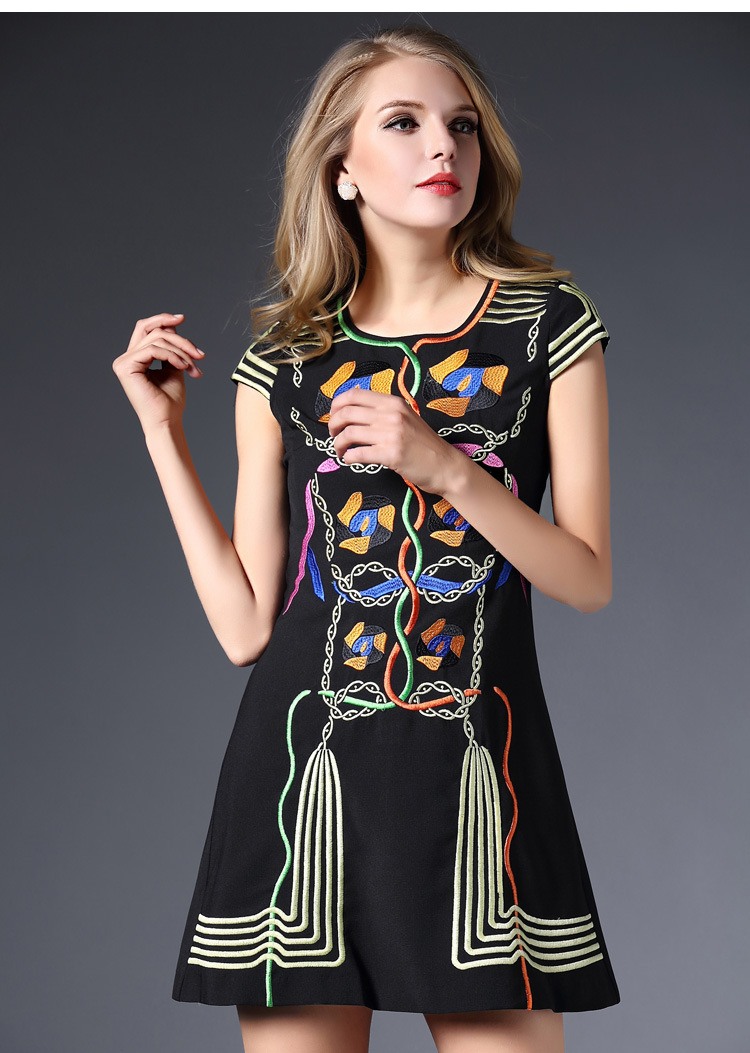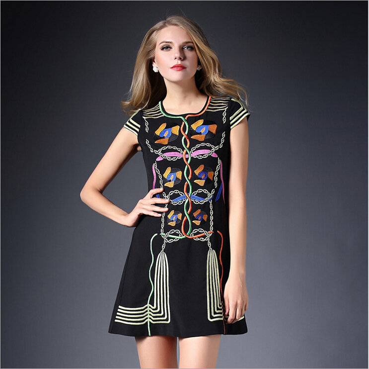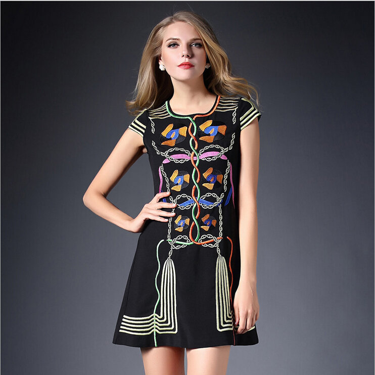 2015春装新款欧美绣花连衣裙女短袖时尚打底裙