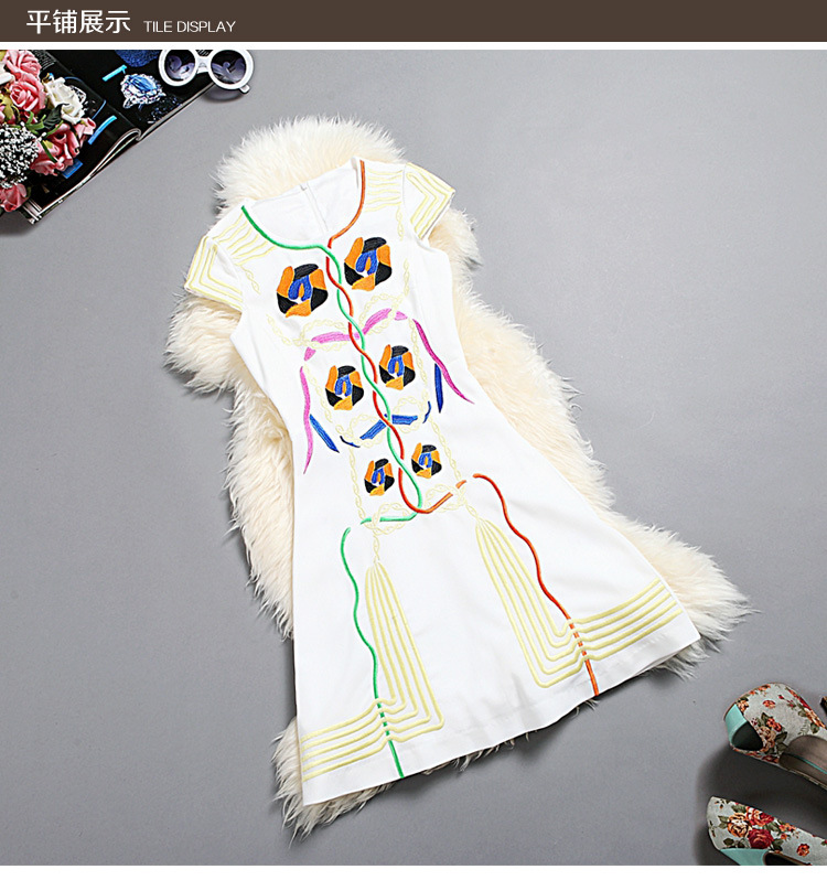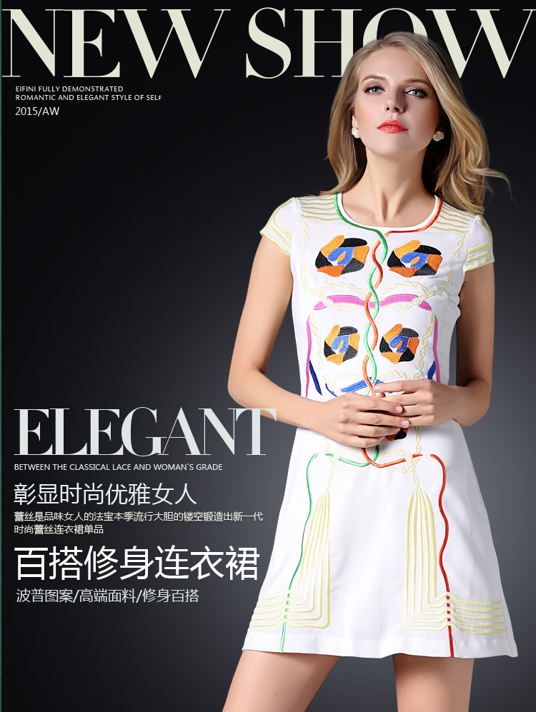 > 2015春装新款欧美绣花连衣裙女短袖时尚打底裙