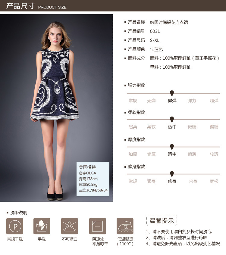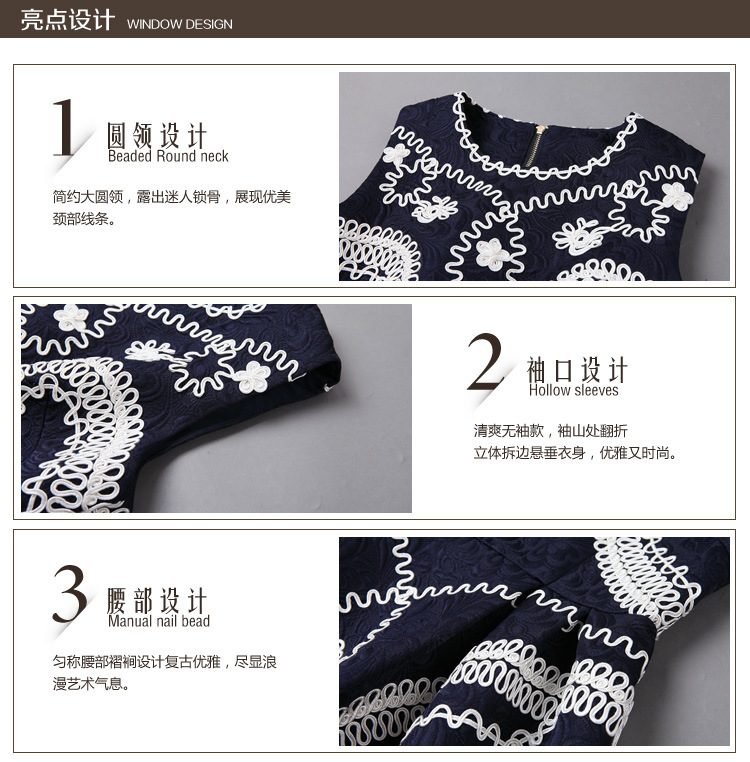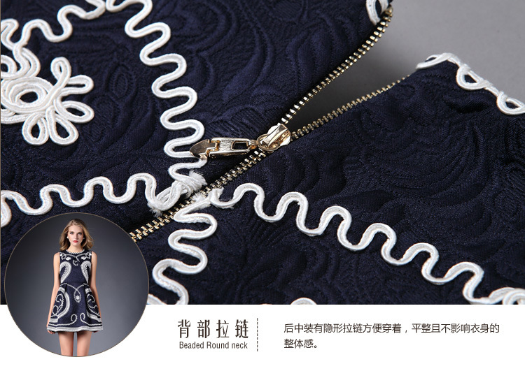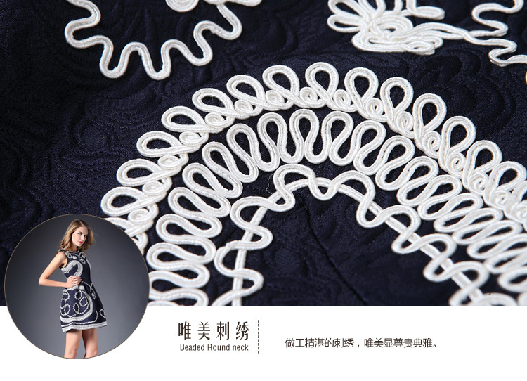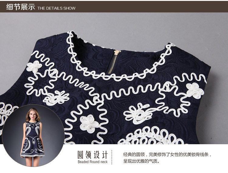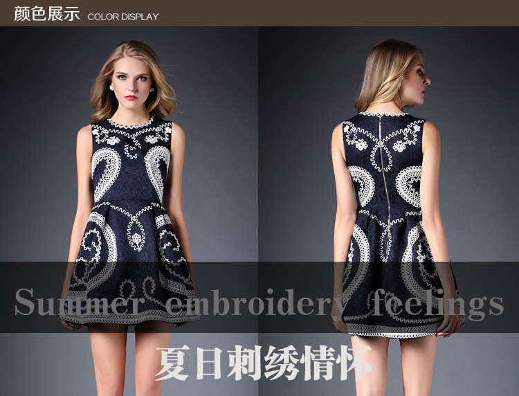 > 2015春装新款女装欧美时尚重工刺绣连衣裙无袖圆领中腰蓬蓬裙