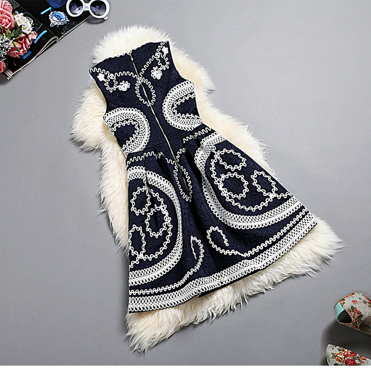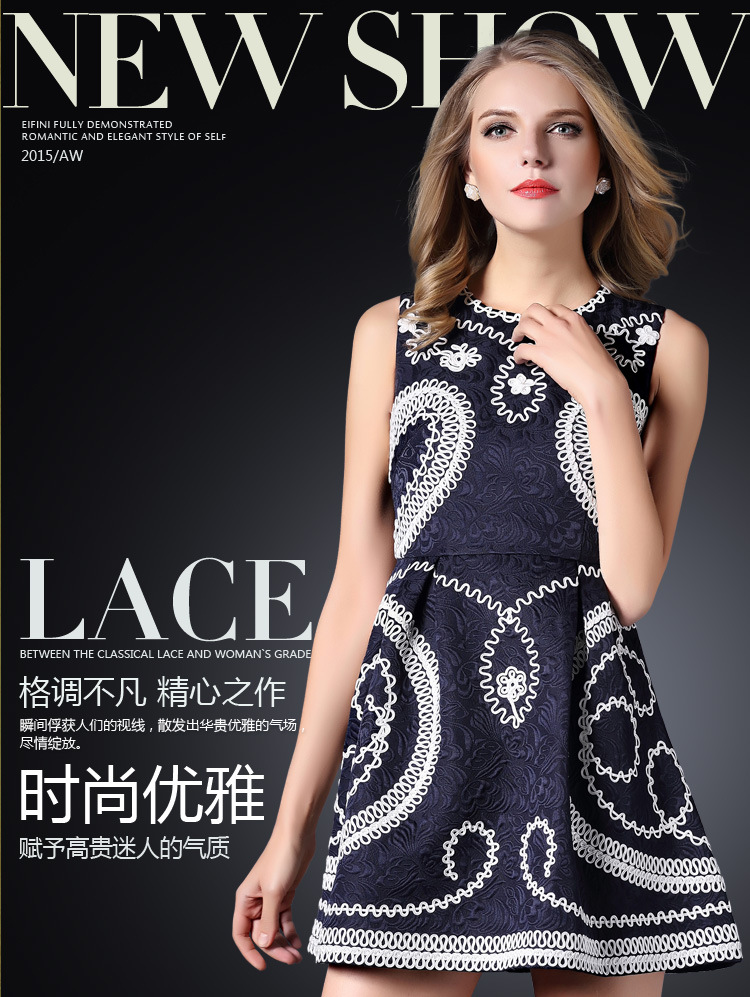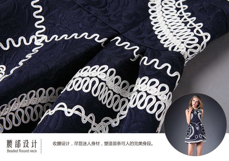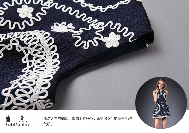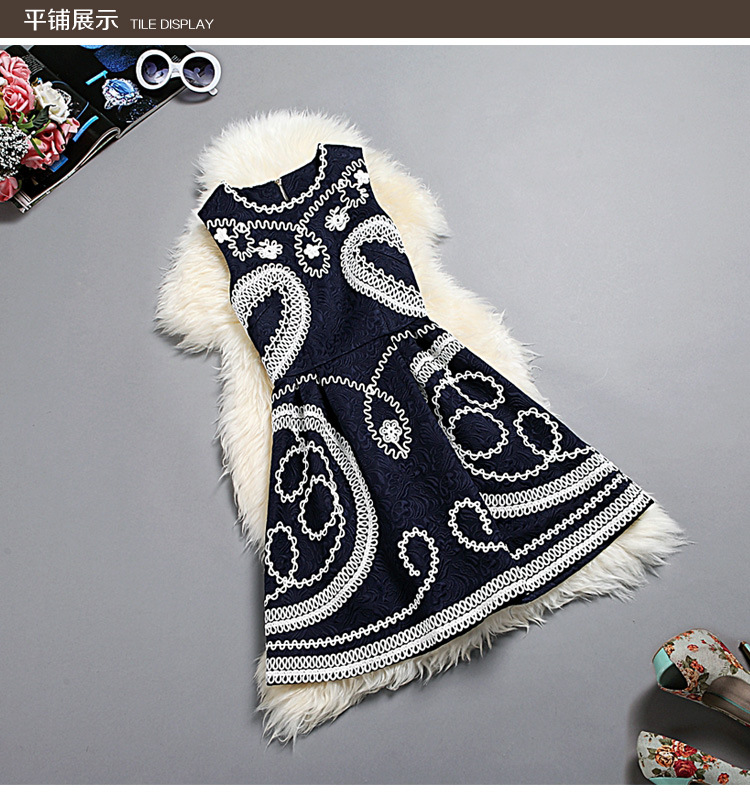 2015春装新款女装欧美时尚重工刺绣连衣裙无袖圆领中腰蓬蓬裙