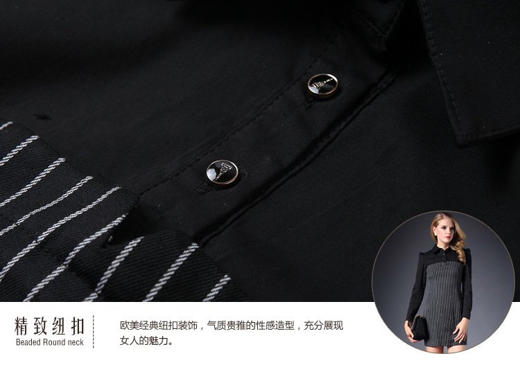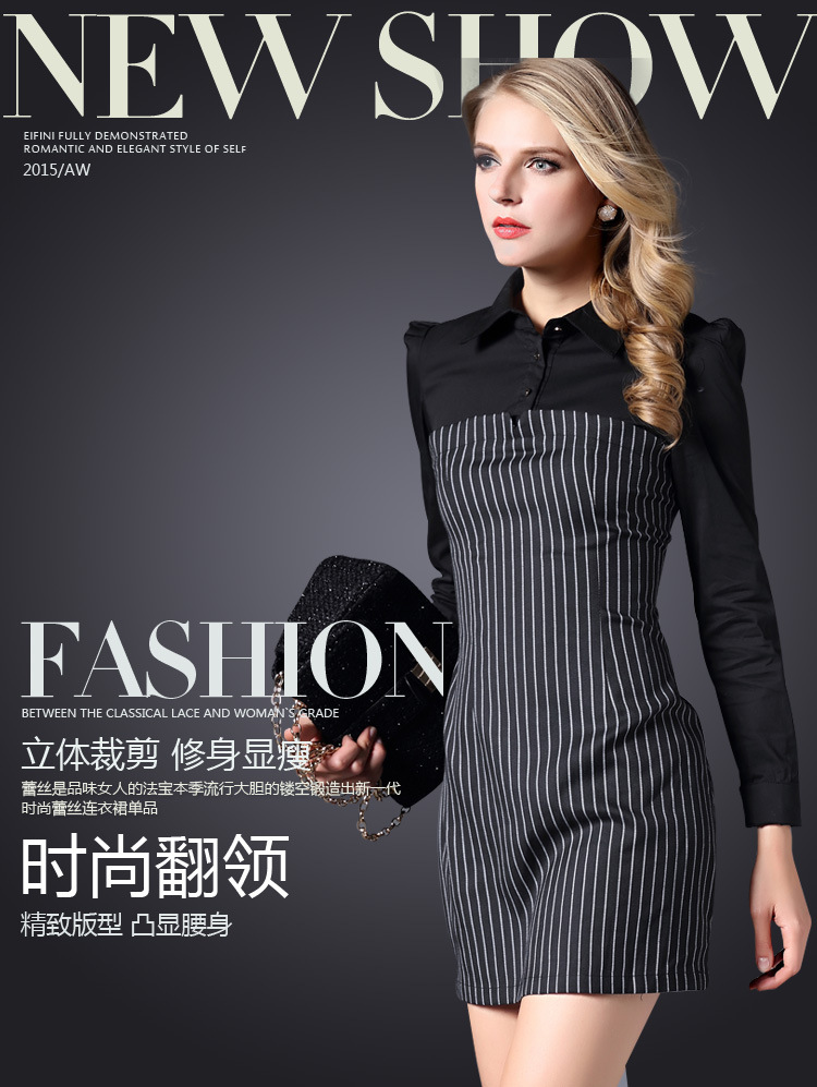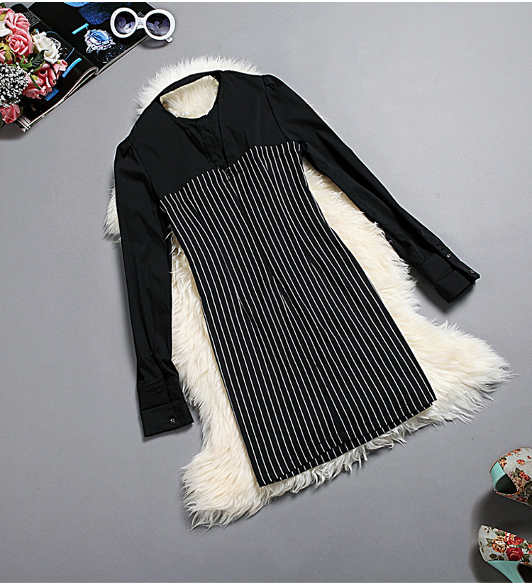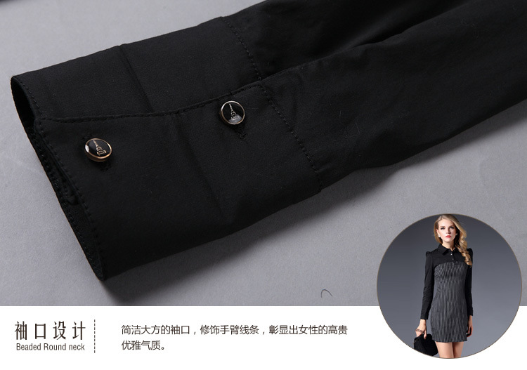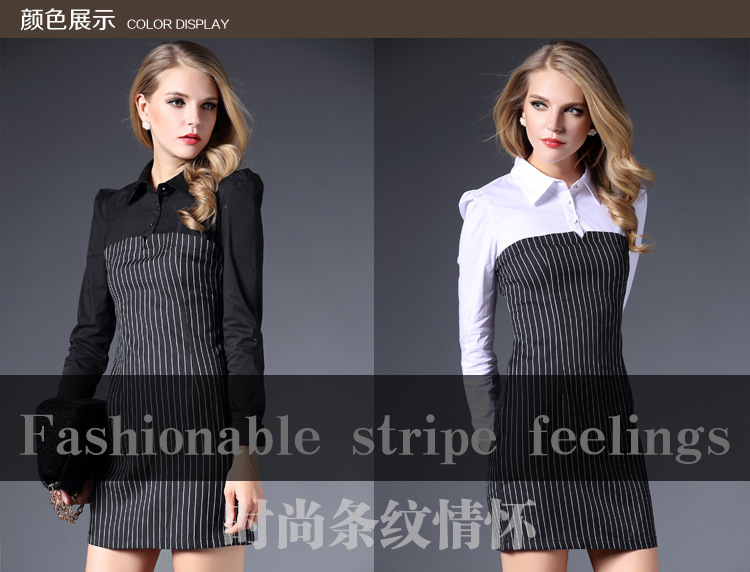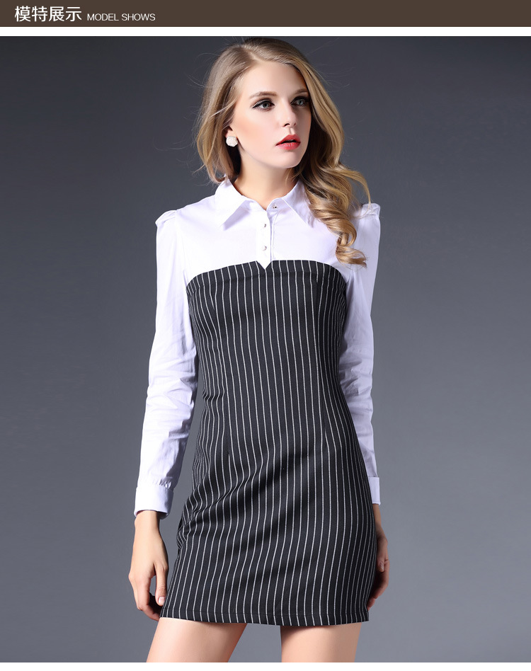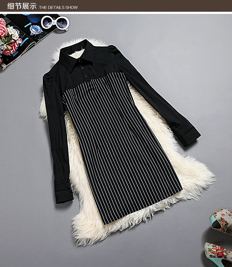 > 2015春装新款拼接连衣裙女长袖全棉条纹打底裙