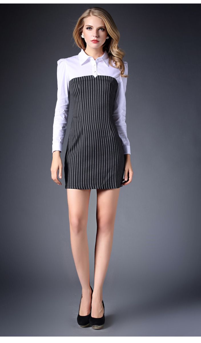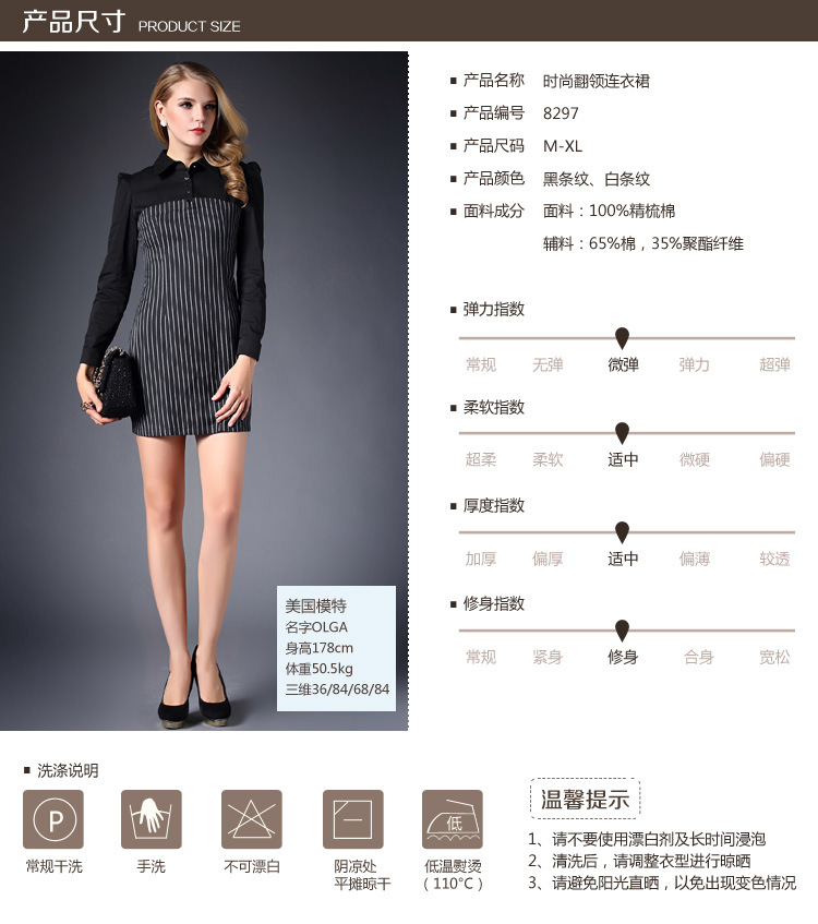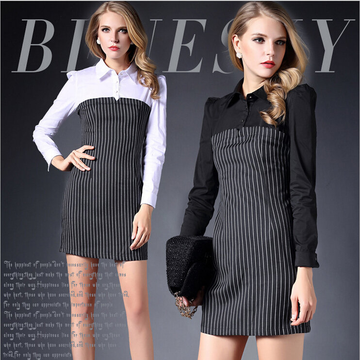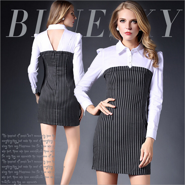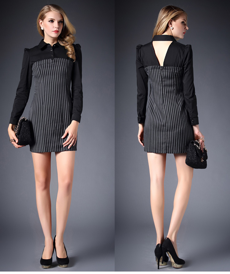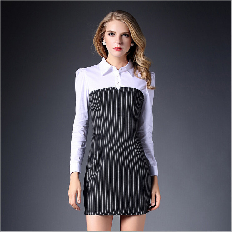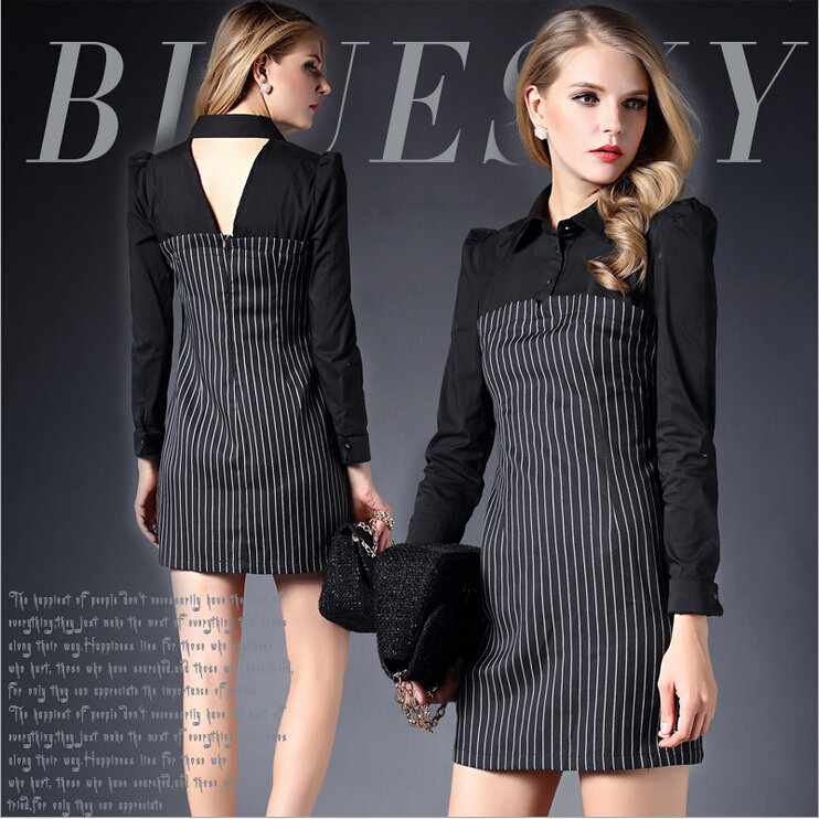 > 2015春装新款拼接连衣裙女长袖全棉条纹打底裙
