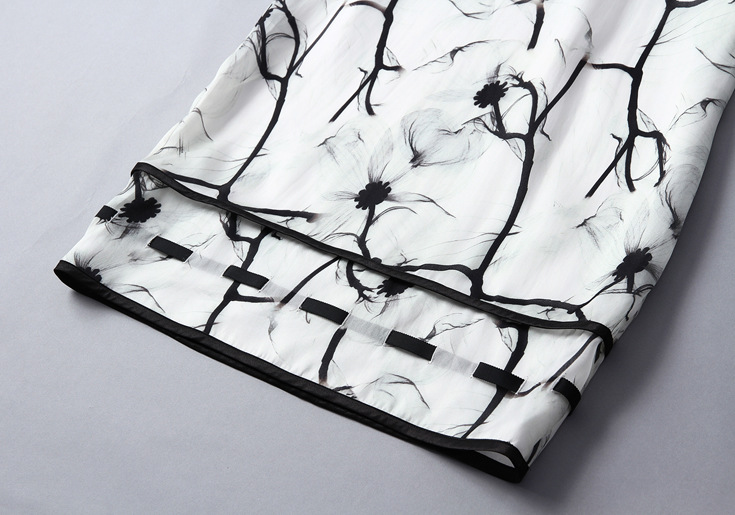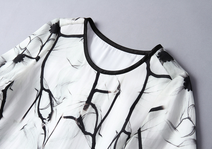 2015春夏新款欧美风印花高档桑蚕丝七分袖A字裙真丝连衣裙
