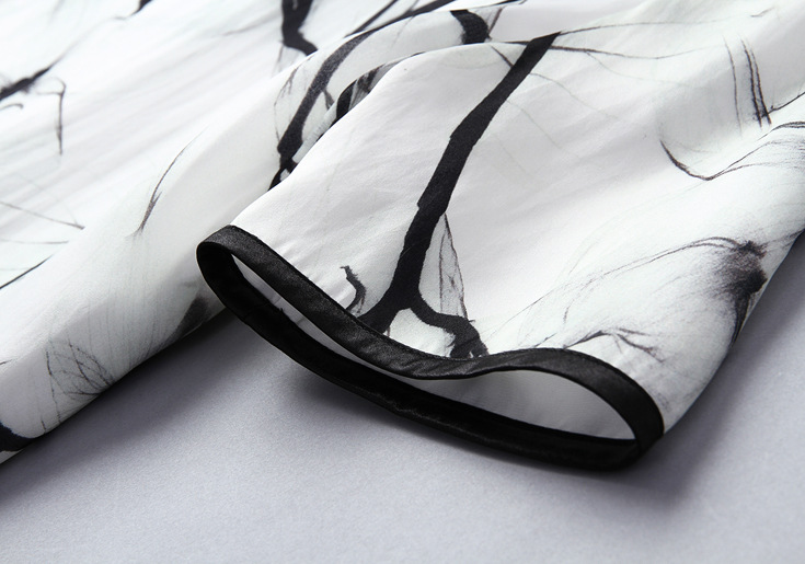 2015春夏季新款欧美风印花真丝连衣裙七分袖衬衣领时尚A字裙