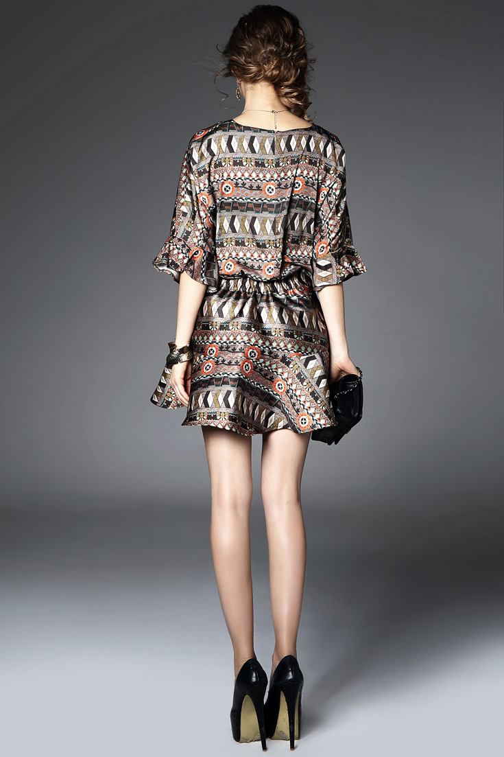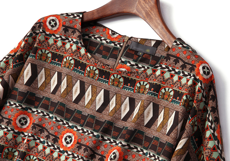 2015春夏新款欧美风印花高档桑蚕丝七分袖A字裙真丝连衣裙