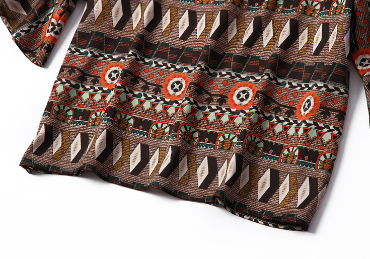 2015春夏季新款欧美风印花真丝连衣裙七分袖衬衣领时尚A字裙