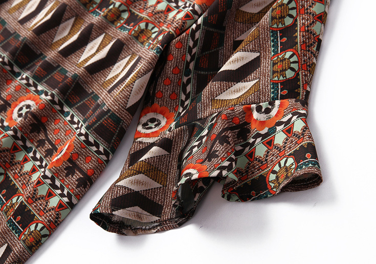 2015夏季女装新款 圆领喇叭袖轻薄印花上衣+波洛克风大摆短裙套装