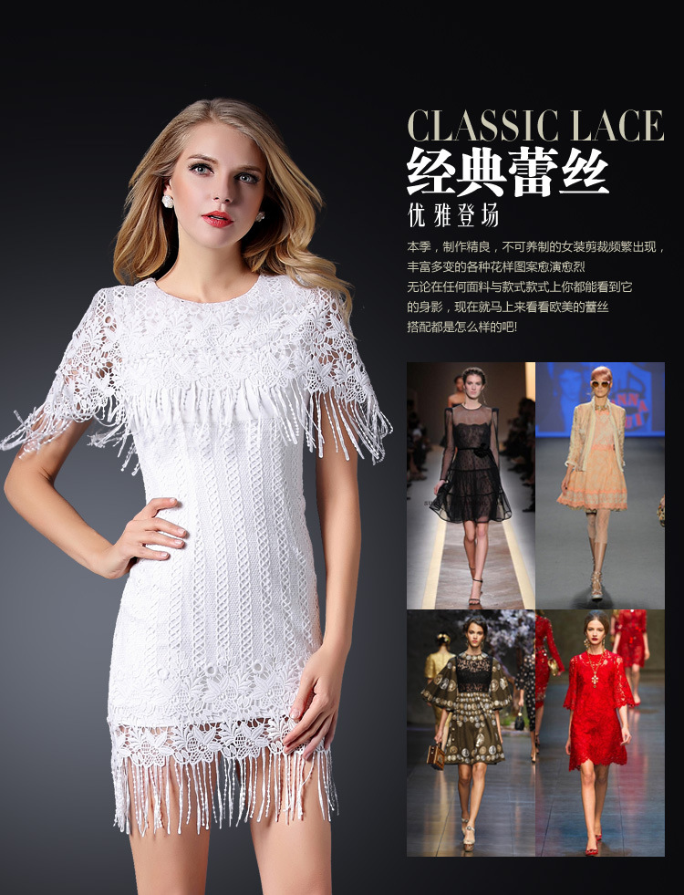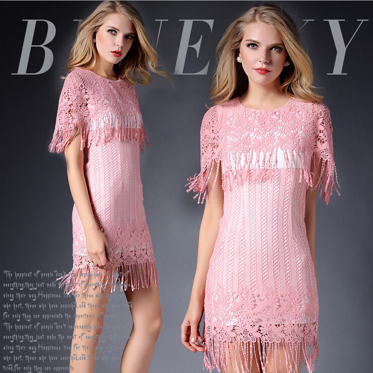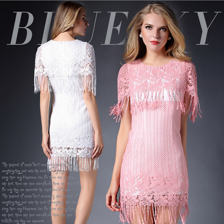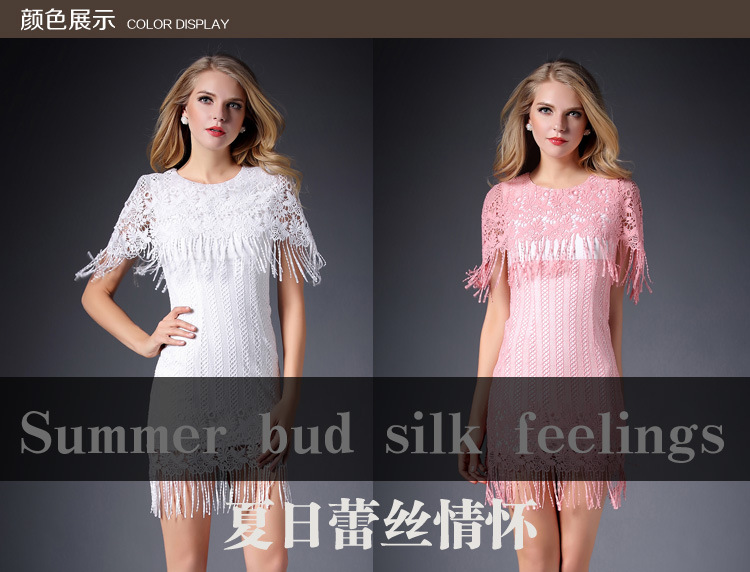 > 2015春装新款钩花镂空性感女装水溶花修身包臀连衣裙披肩款