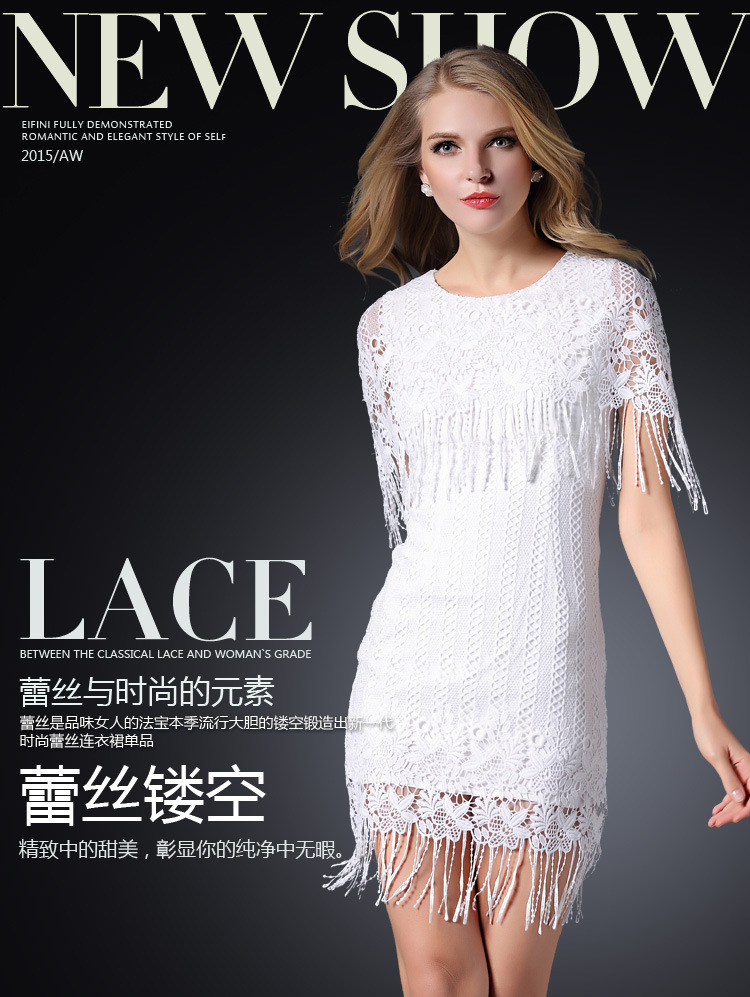 2015欧美风春装新款女装连衣裙显瘦气质镂空修身A字裙