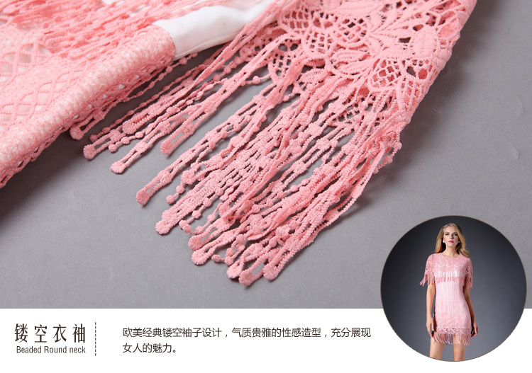 2015春装新款钩花镂空性感女装水溶花修身包臀连衣裙披肩款