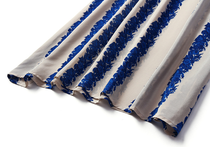 2015春夏新款欧美风印花高档桑蚕丝七分袖A字裙真丝连衣裙