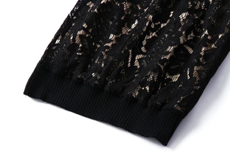 2015夏季新款 圆领弹力螺纹蕾丝拼接上衣+纯色半裙套装