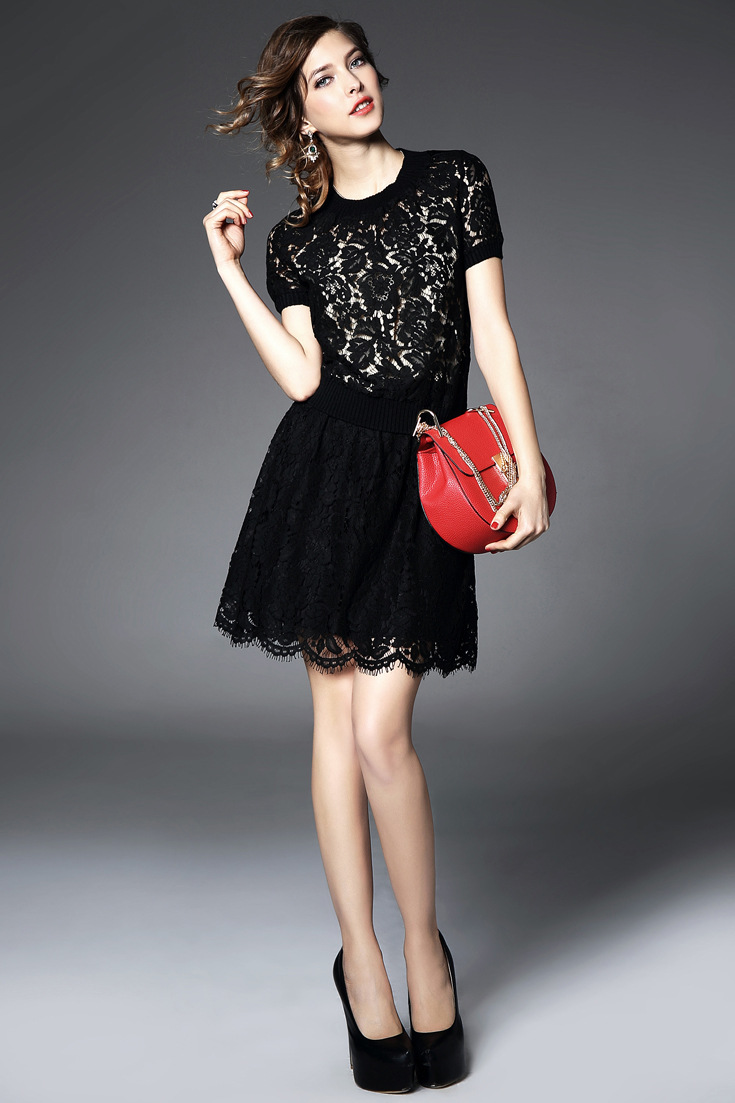 2015欧美风春装新款女装连衣裙显瘦气质镂空修身A字裙