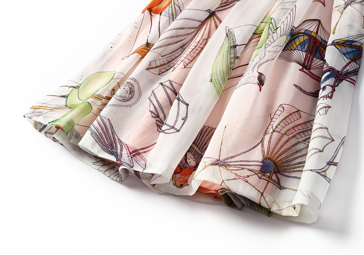 > 2015品牌女装夏季新款 圆领真丝欧根纱印花a字短裙无袖连衣裙
