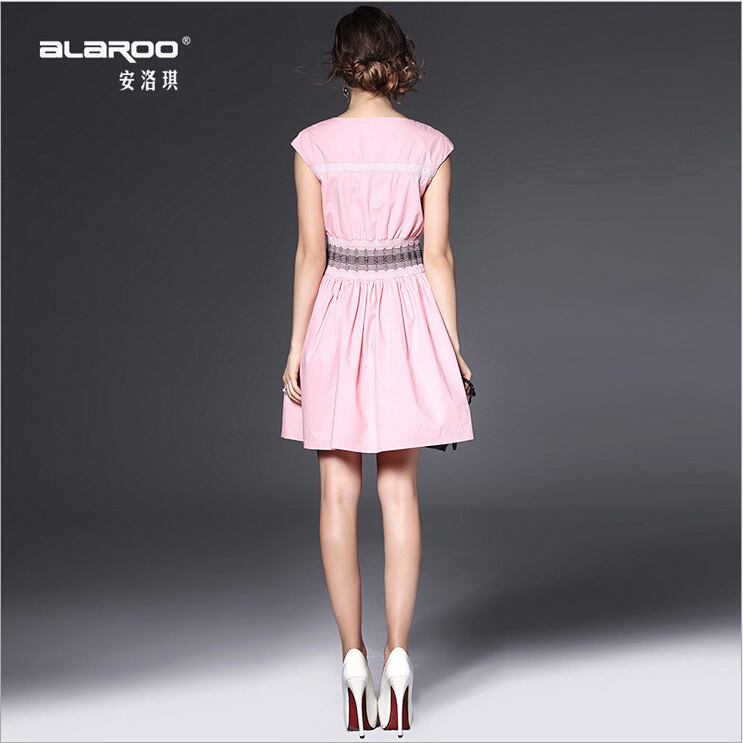 2015欧美风春装新款女装连衣裙显瘦气质镂空修身A字裙