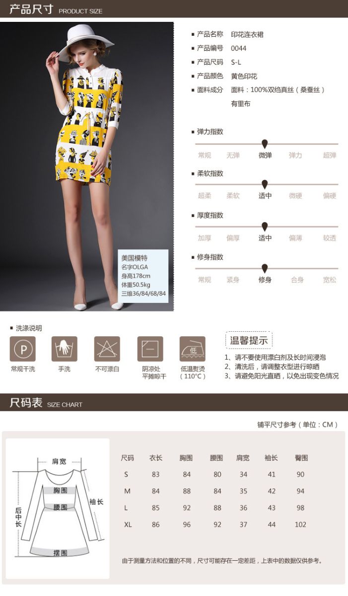 > 2015春夏新款欧美风印花高档桑蚕丝七分袖A字裙真丝连衣裙