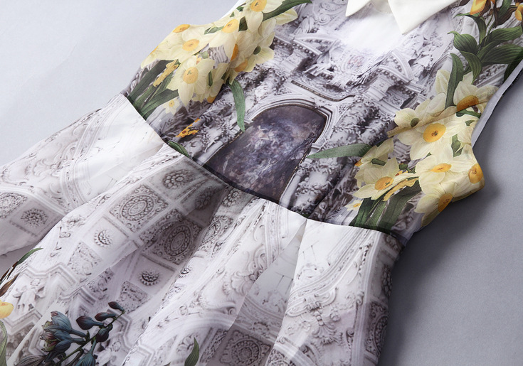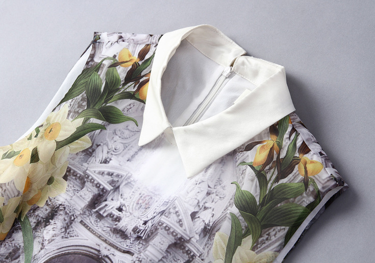 2015夏季新款女装 欧美翻领印花修身a字裙品牌连衣裙