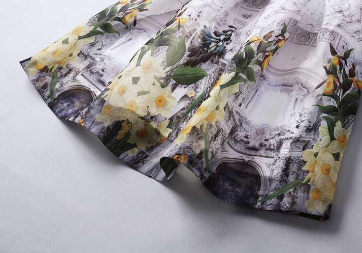 2015春夏新款欧美风印花高档桑蚕丝七分袖A字裙真丝连衣裙